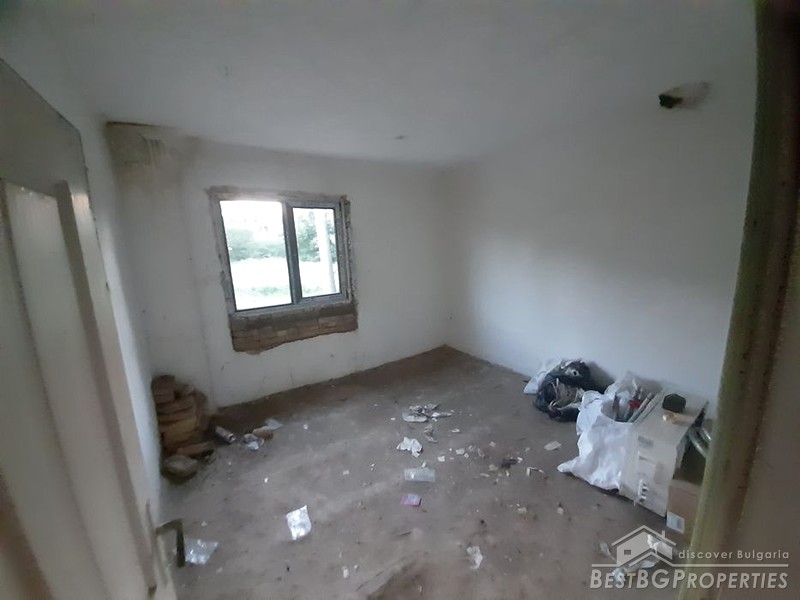 The house has two floors - a ground floor (3 rooms + a large corridor) and a second floor (3 rooms + a large corridor). The construction is solid, although the house requires complete renovation. The roof has already been repaired. There are no leaks. The windows have been replaced and an armored front door has been installed on the second floor.