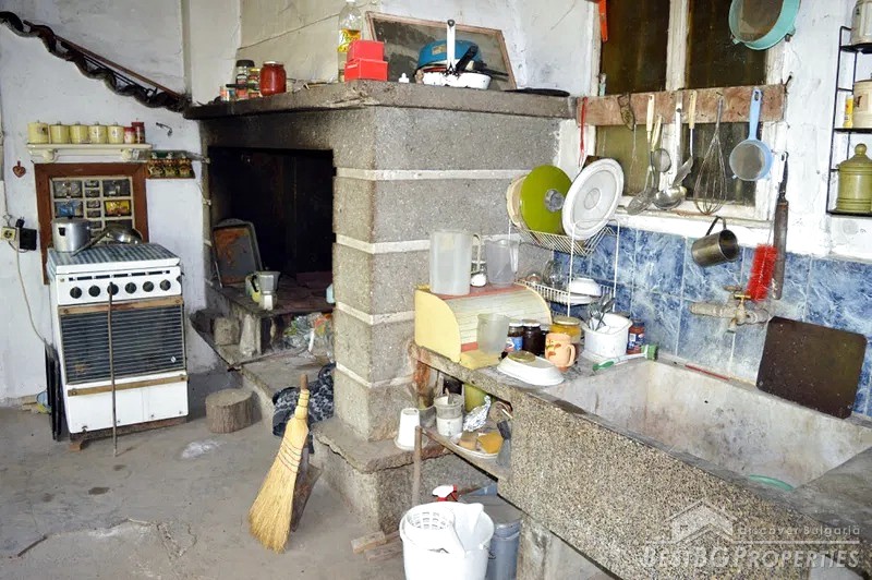 The house is on one floor, with two entrances on both sides. The property also comes with a summer kitchen. The house itself consists of a kitchen, two bedrooms, living room, closet, internal bathroom with toilet and a hallway. The living room is heated via a fireplace, which makes a very cozy atmosphere. There is a cool basement. The summer kitchen comprises with a built-in oven. It opens onto a patio where you can enjoy the beautiful landscape and the orchard.