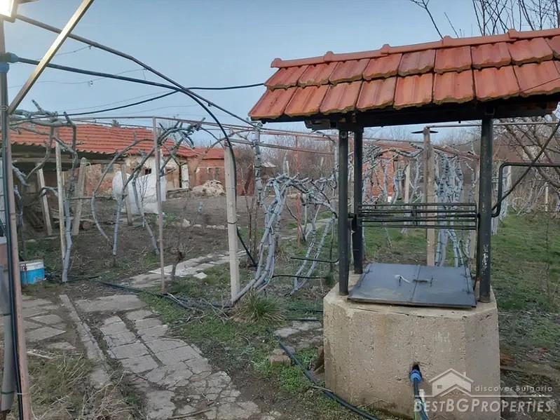 The property is supplied with drinking water, a well, there is a garage, farm buildings and 100 sq m of vines. The vegetable garden has an area of 300 sqm and includes 30pc peaches, 30pc plums, 13pc cherries, 5pc quinces, 3pc figs and 260pc apples. There are also over 1500 pieces of strawberries in the yard.