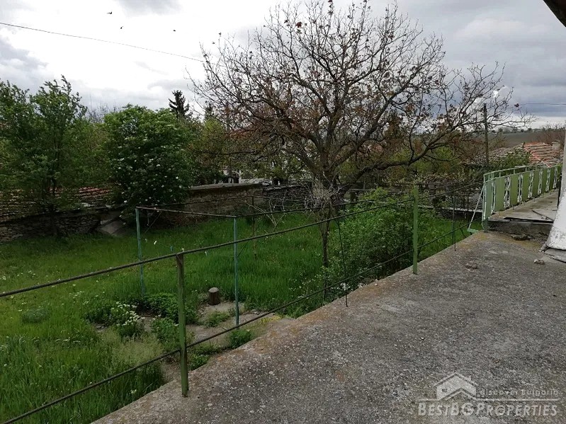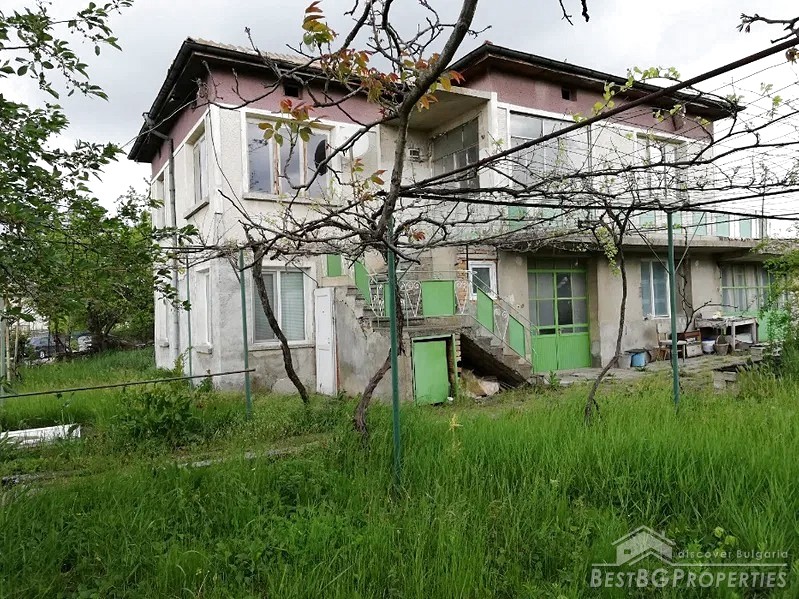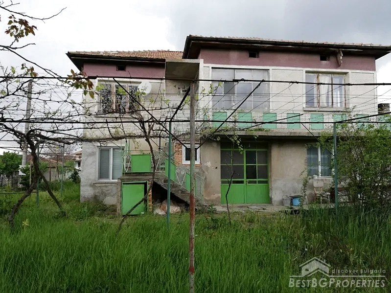 The building is brick construction with a concrete slab between the floors. It was built in 1972. There are two floors - each is 90 square meters and consists of an entrance hall, large corridor, 3 large rooms, kitchen and a bathroom. The first floor has partially replaced PVC windows. The second floor has a panoramic view and a very large terrace overlooking the courtyard.