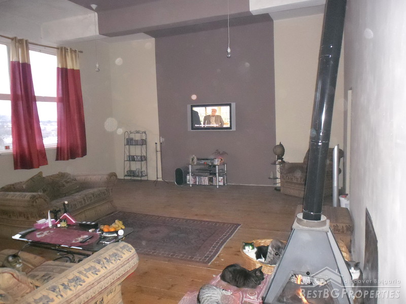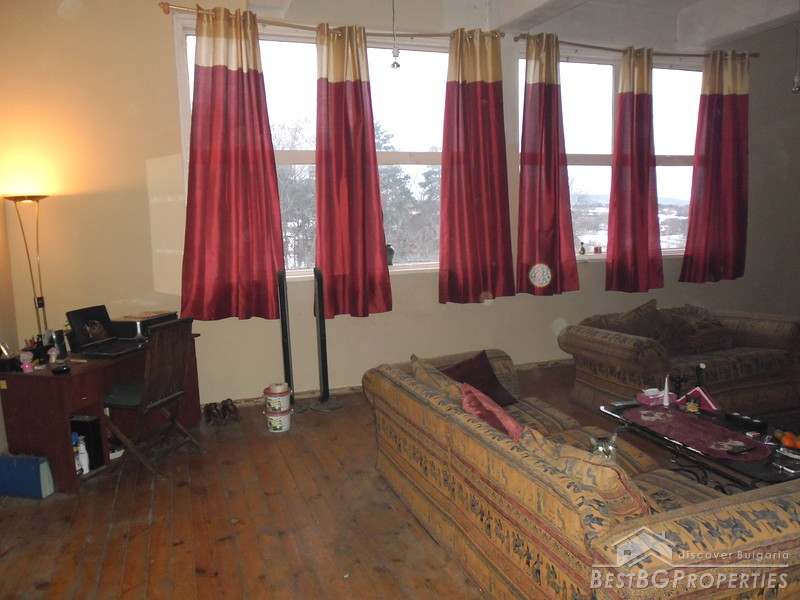 Huge Living Room (approx 100 sq m) which has sanded and varnished wooden floor and has been plastered and decorated. There are huge windows - 8 sq m that offer unbeatable views to the mountains and surrounding area. There is a small hall accessed via a new wooden door from the living room. This provides access to a very large balcony (approx 50 sq m) with amazing views to the mountains and surrounding woods. Dining room (approx 50 sq.m.) with sanded and varnished floor boards. Kitchen with gas cooker, sink unit and fridge freezer (approx 50 sq.m.). Utility room which is plumbed for washing machine (approx: 15 sq m). Grand hallway with two chandeliers and grand entrance hall. There is a plumbed room with toilet at the end of the hall.