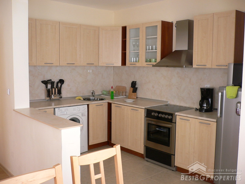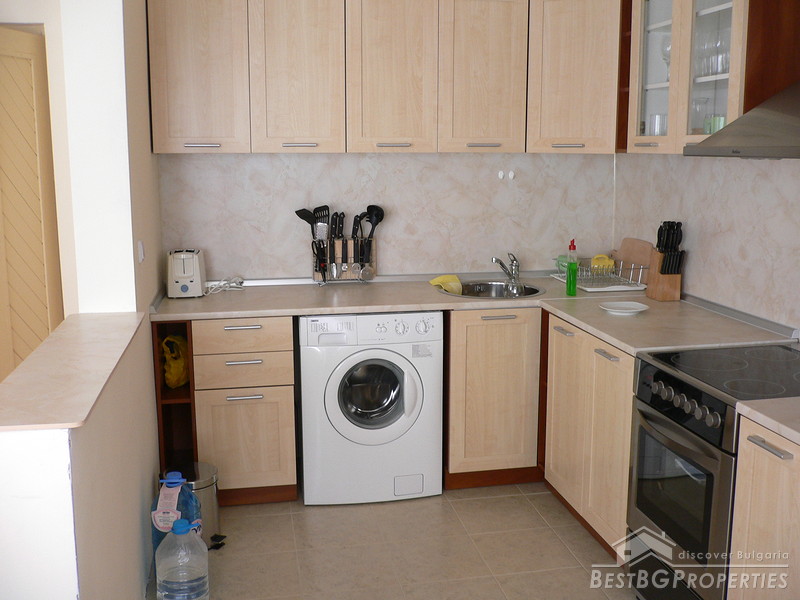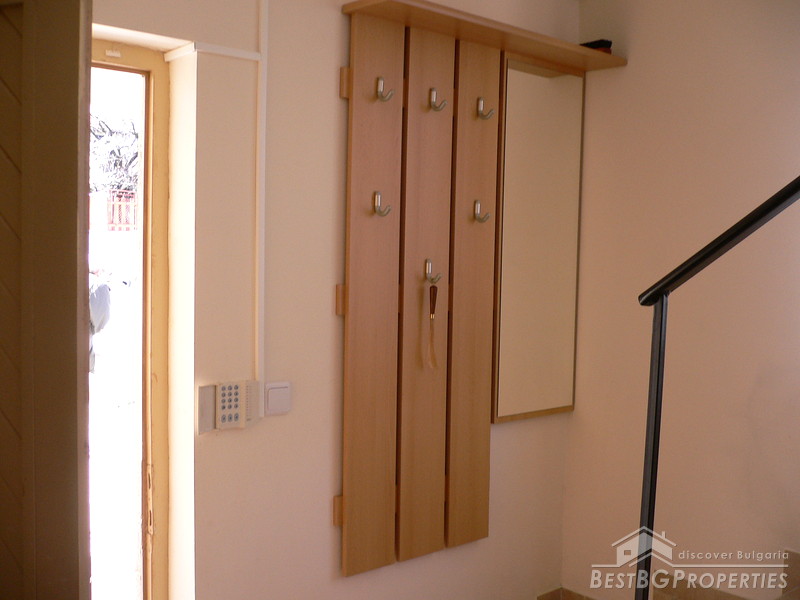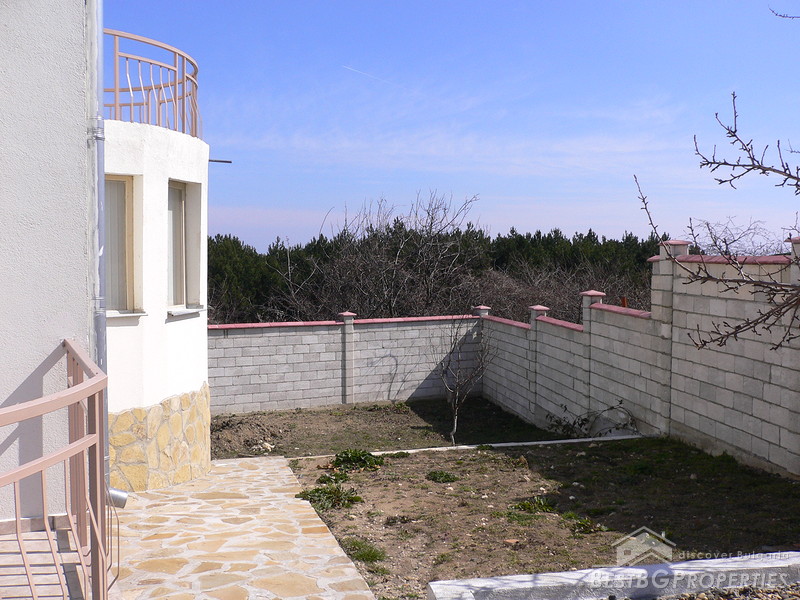 This brand new house is located on the plateau above the famous summer resort of Golden Sands. The resort itself is only 3 km away. A newly developed golf complex is only 20km away. The property offers an open sea view from the balcony on the second level. The house has 90sq.m of living area and has two floors. The ground floor comprises a living room, open plan kitchen and bathroom/WC, and three bedrooms and bathroom/WC on the second floor. It is fully furnished with fitted kitchen with all electrical appliances – fridge, washing machine, cooker, etc., as well as full bedroom sets. The plot size is 600sq.m.