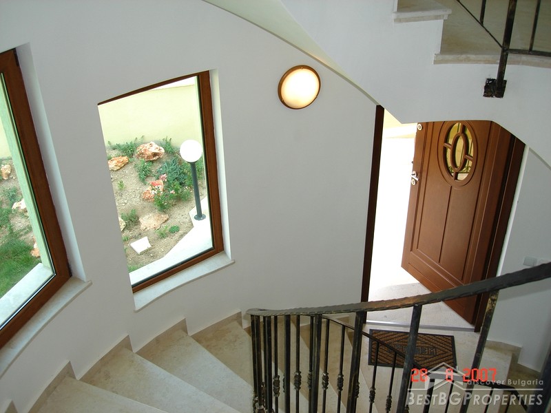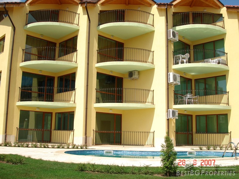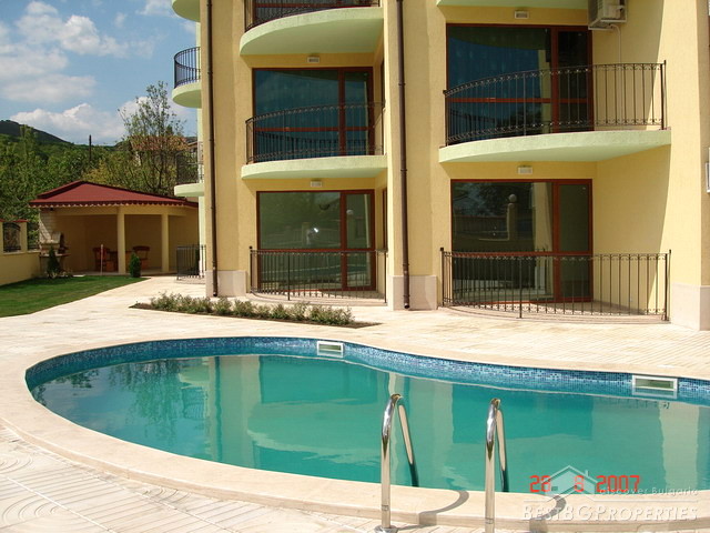 We offer you an apartment in a new luxury building situated in the villa zone of the town Balchik.The apartment is fully finished. The building has an excellent location so that you have on open panoramic sea view. There is a garden with a barbecue place in front of the building,private swimming-pool,security system,parking place and childrens playground.
