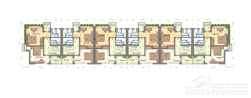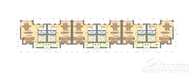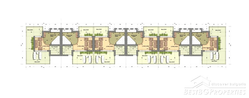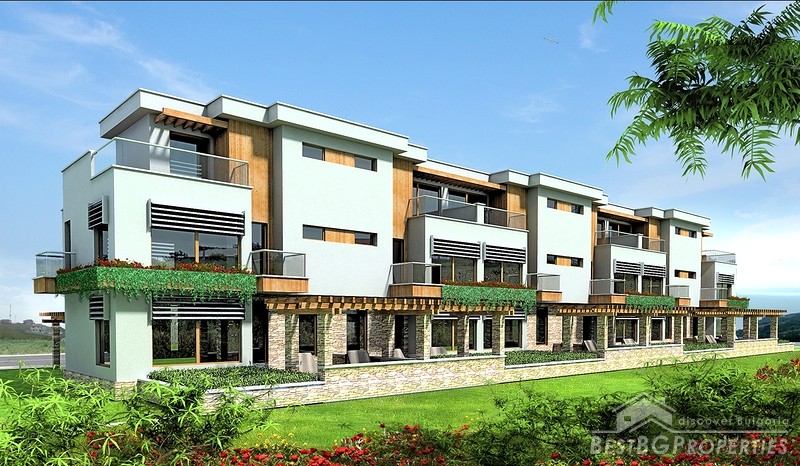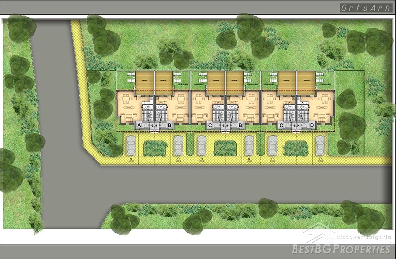 An attractive holiday property located in close proximity to two of the most perspective golf locations on the Northern Black Sea. It consists of two available courtyards set on a main street in the holiday area of the village of Topola situated on the panoramic plateau over the coast between the towns of Kavarna and Balchik. For the plots there had been prepared common investment project compiled by a notional architectural project in conformity to the parameters of constructing and the general outlook of the buildings in the region as well as the market search of holiday properties in the sea golf destinations in the next five years. The project consists of architectural plans of a three storey structure that consists of six individual villas suitable for all round the year use, but envisaged mainly for temporary use and renting during the active golf season. Each villa has its own yard converted into a garden and a parking space that can be accessed from the street, recreation area and barbecue place in the quiet part of the property. On the first floor there are entrée, service premise, and storage under the stairways, living room and dining room with a kitchen functionally prolonged with a summer green veranda. The second level is envisaged for recreation and rest as the main bedroom has en suite bathroom and a terrace while the second bedroom is for guests and can be accessed from the entrée on the storey. The mansard features relax area with spacious panoramic terraces and consists of living room connected to a private Jacuzzi bar that can be used as an atelier, study room or a second bedroom for guests. The structure features East and West orientation providing sunshine to all residential premises a affording a magnificent sea view from both directions. Greening is envisaged mainly with exotic plants and trees out of the area of the individual courtyards. The frontages of the structure are made of natural materials in light tinges with architecture is of modern Mediterranean style and decorative elements as the pergolas of the yard greening, the flower pots in front of the terraces and the impressive panoramic windows underline the concept of the project - individuality in details expressed in high standard of living, guaranteed with the execution of the investment project.