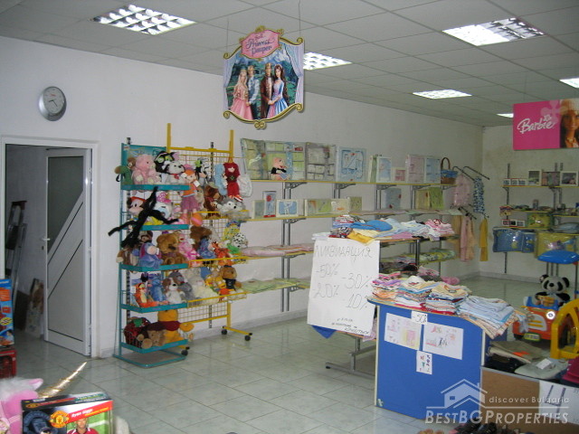 We are offering you this profitable property located in center of the city of Veliko Tarnovo. This is a store with 250 sq m of storage space with offices, 2 bathrooms, and 10 meters wide shop window. The property is suitable for commercial or office activity. The building is finished with PVC window frames, cell ceilings, tiled flooring, latex painted walls, tiled bathroom walls and floor, air conditioning, SOT security system, there is also a place for a commercial on top of the building. The property has its own parking space for 5-8 vehicles. At the moment the sore operates as a kid's shop for clothes, toys, books and others.