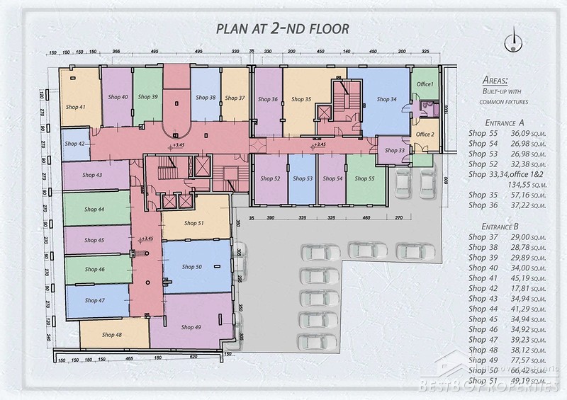 Shop № 51 is located on the first floor of the commercial part of the building and can be used for office and has the following parameters: