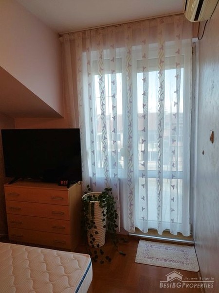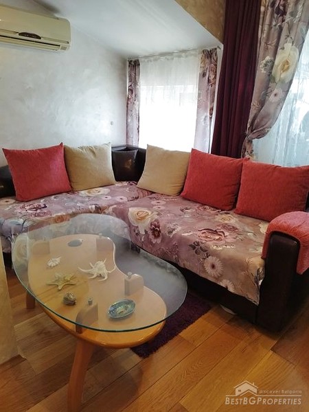 For sale is a one-bedroom apartment with a separate kitchen located in the residential area Vazrazhdane, in Burgas. The apartment has a total living area of 65.39 sq m that includes 14.44 square meters of shared parts.