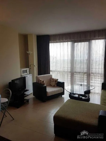 For sale a fully furnished spacious studio, part of a gated apartment complex close to the sea resort of Sunny Beach (on the Sunny Beach-Kosharitsa Road). The apartment reveals impressive mountain and sea views!