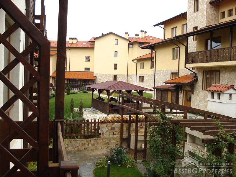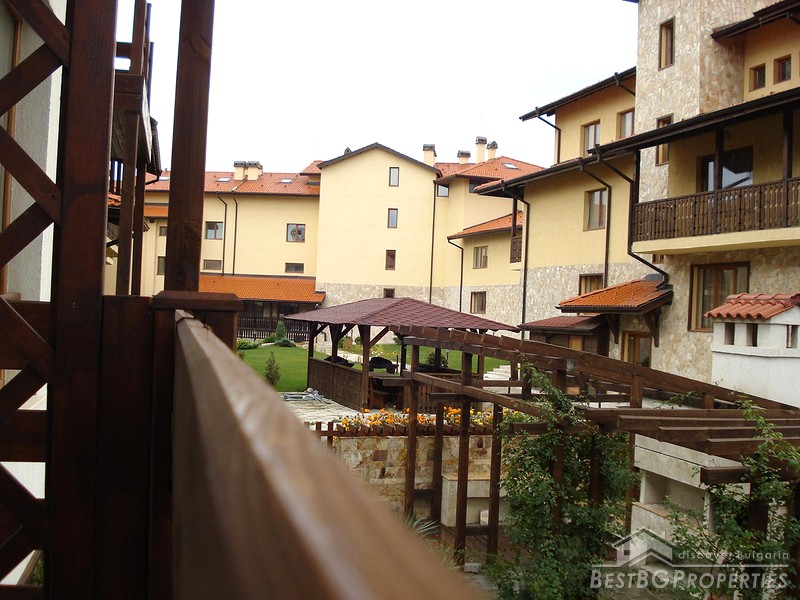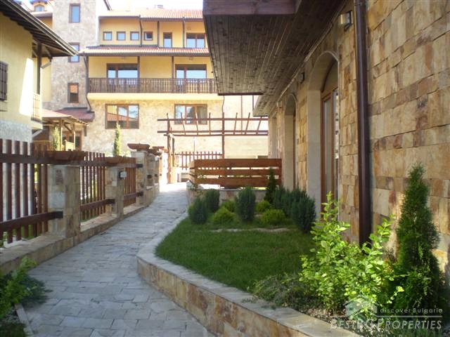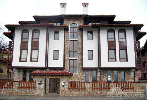 The apartment complex sits in the heart of Bansko, Bulgaria's premiere mountain resort and the centre of large foreign investment. It is located at a short distance from the new ski lift station and just across the river from the centre of the old town.