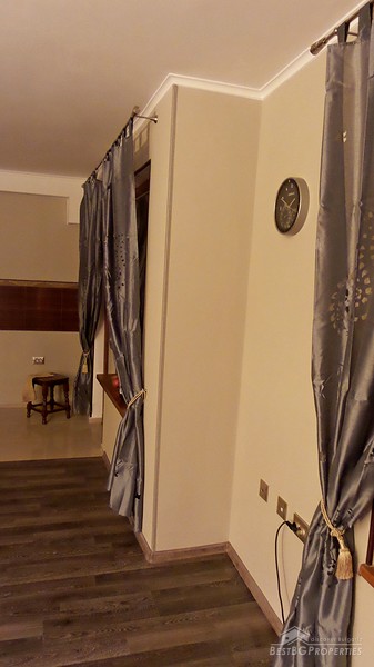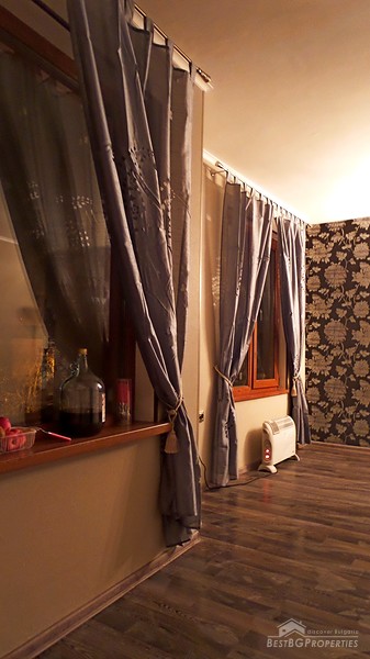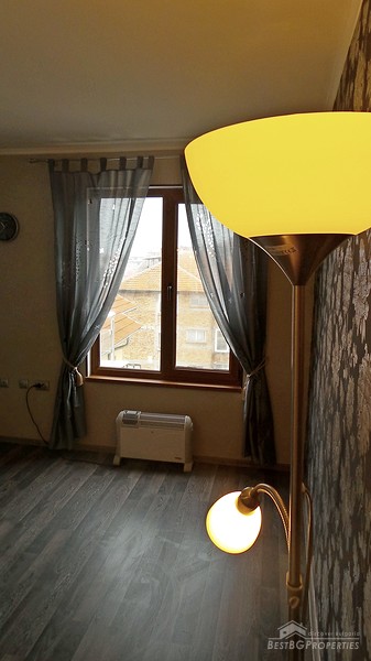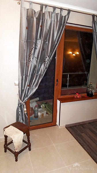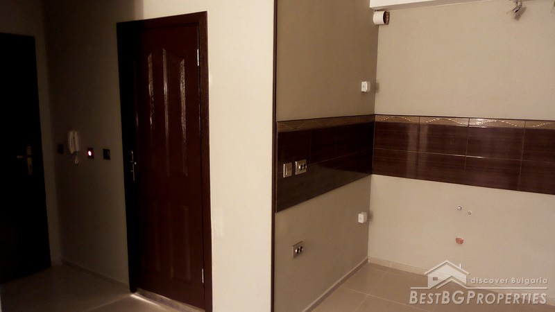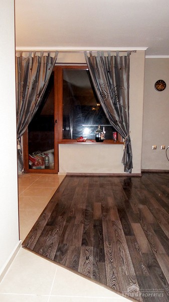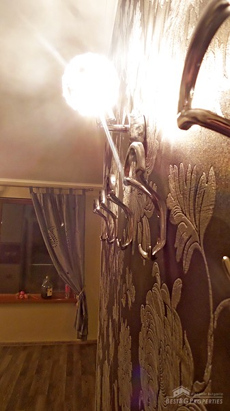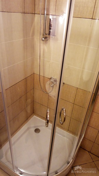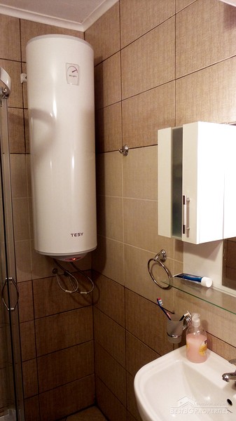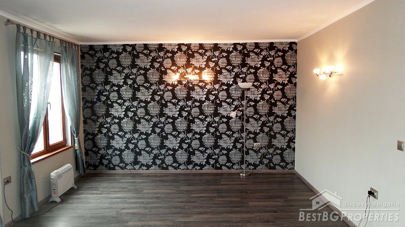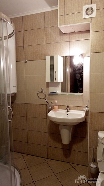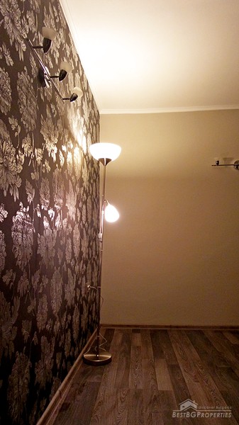 The apartment was never used and was finished just recently - 11.2014. It has wallpapers on the walls, suspended ceilings and laminate floors. There are sockets for TV and the Internet, all lighting fixtures, etc. The bathroom has new sanitary, 80l boiler, a shower cabin, a cabinet with a mirror and a backlight, socket for hair dryer. The kitchen area is finished with tiles. The hallway includes hangers for clothes. A new lock is installed in the door.