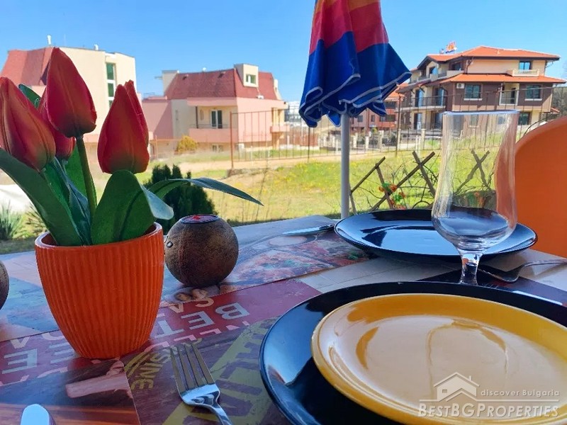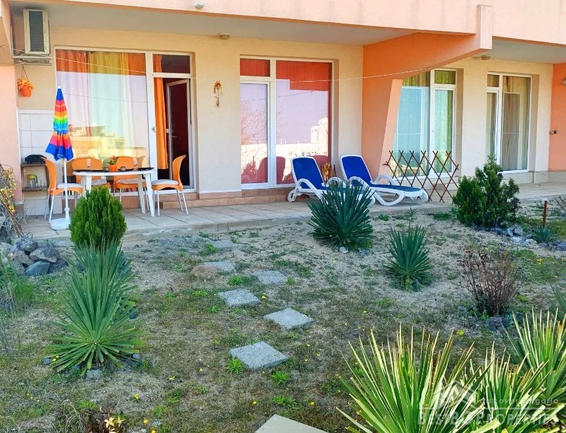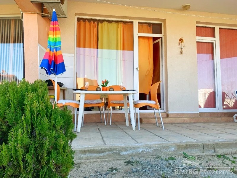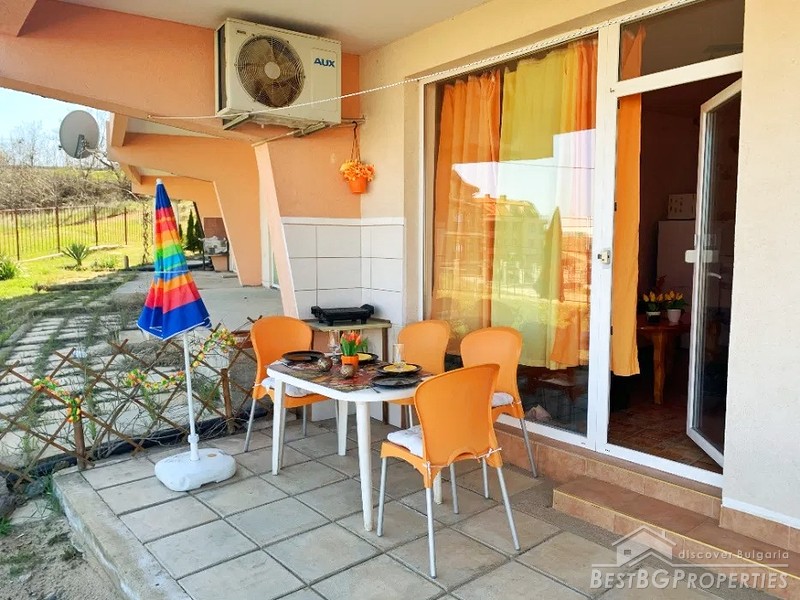 The total living area is 42 sq m. The apartment is on the ground floor and comes with a veranda of 15 sq m and its own separate private yard. The price also includes 6 sq m of the common areas of the building and 142 sq m ideal shares of the plot.