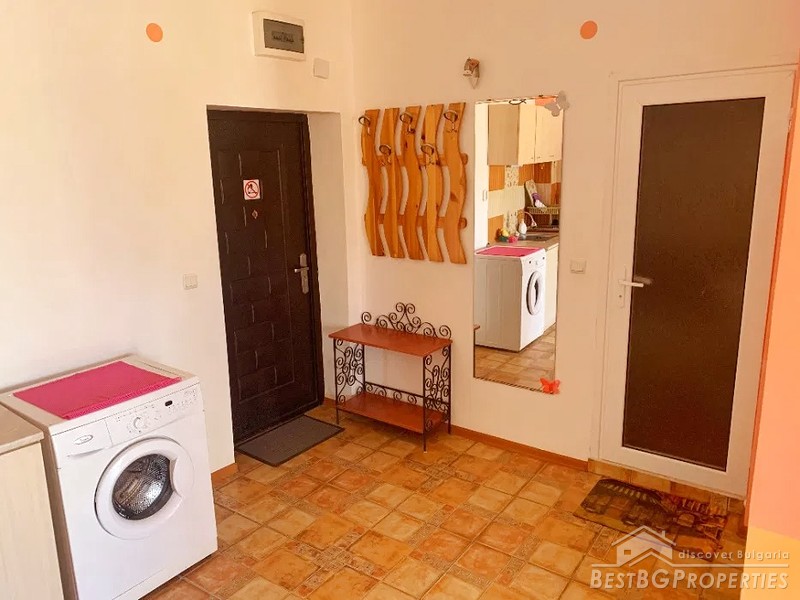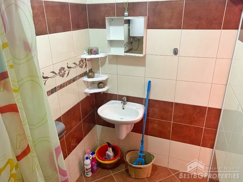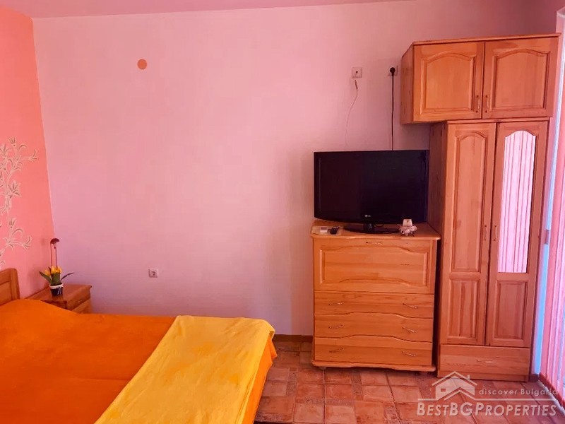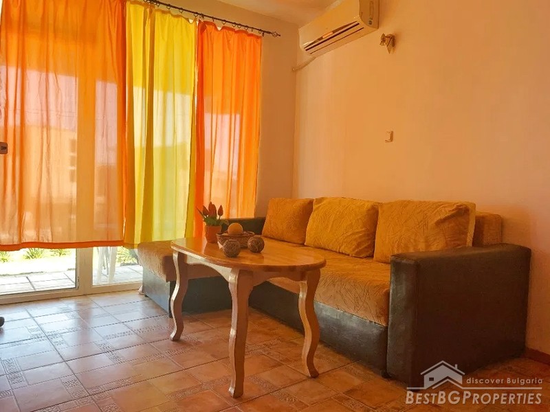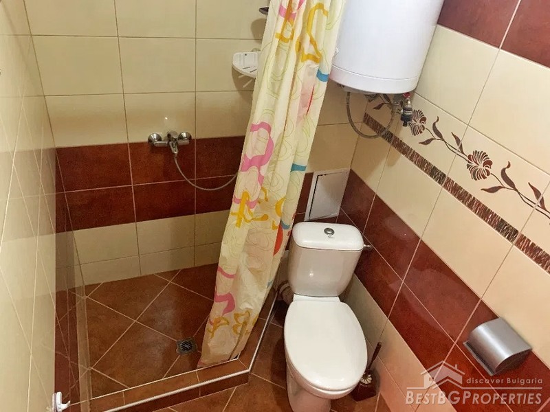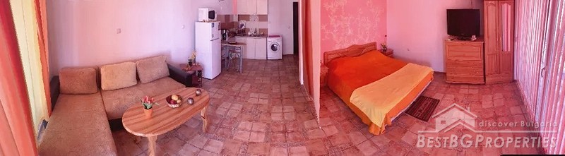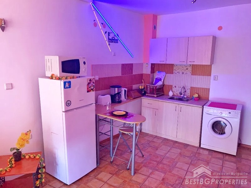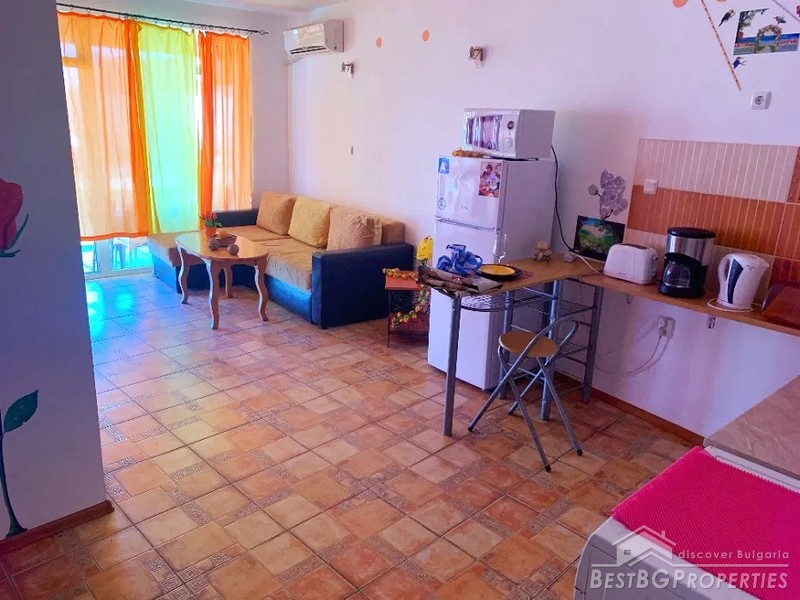 The distribution of the area inside the apartment is as follows - one room with kitchenette, bathroom and a hallway. The studio is fully furnished and ready to move in. The flooring is terracotta. There are PVC windows.