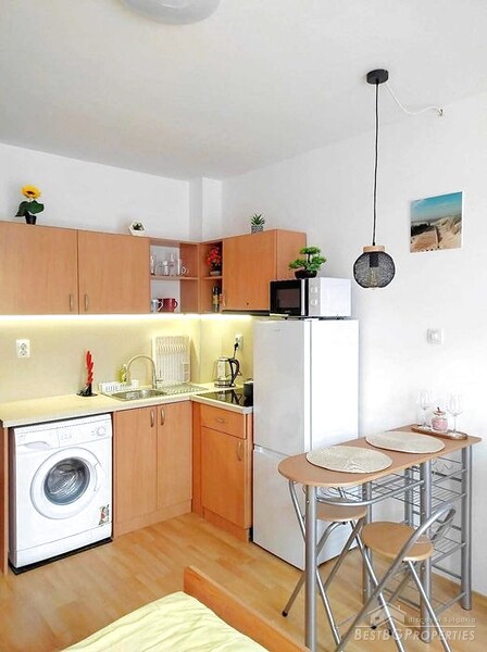 For sale is a spacious studio apartment located near Sunny Beach. The property is part of a gated complex suitable for year-round living.