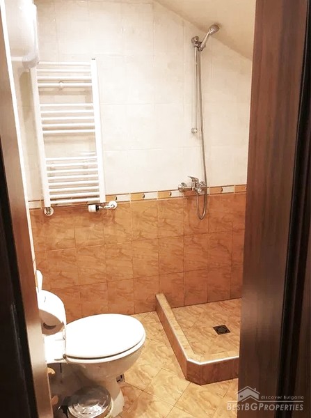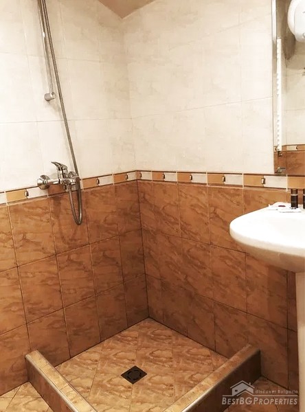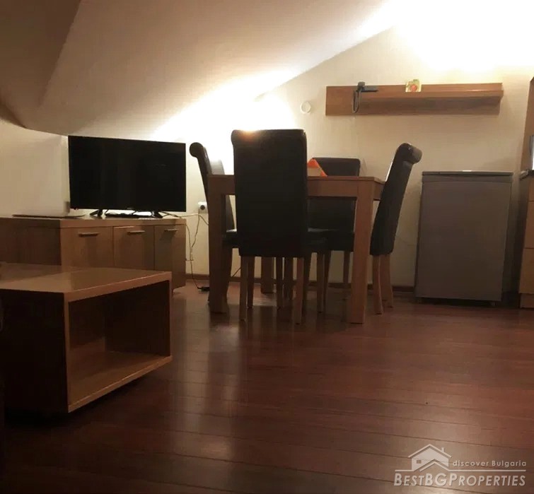 The studio has an area of 42.20 square meters and is located in a closed-type complex next to the city park and a mini market. It is about 10 minutes walk from the center of Bansko.