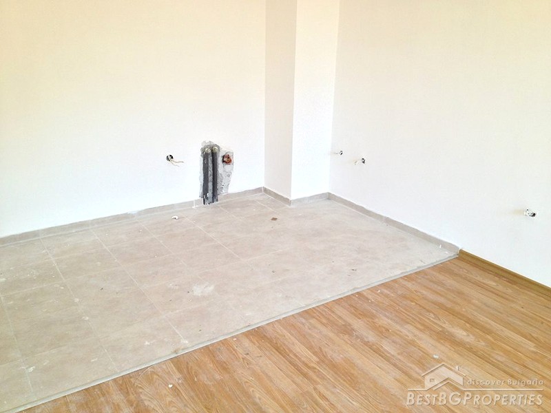 The apartment is finished "on key" stage with laminate, faience, equipped bathroom and with boiler. The windows overlook south-west. There is no furniture included and the building does not have an elevator. There is a parking in front, no annual maintenance fee.