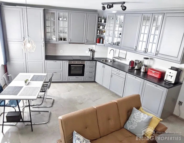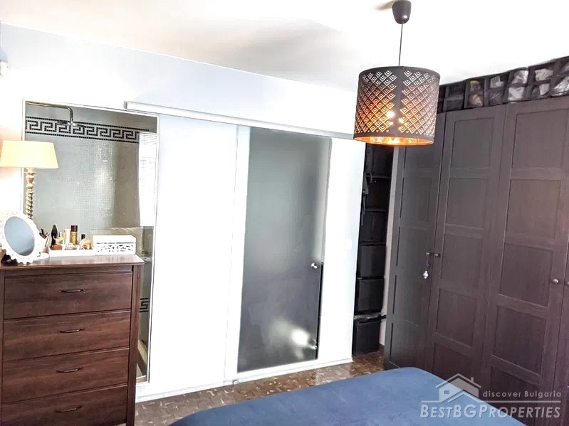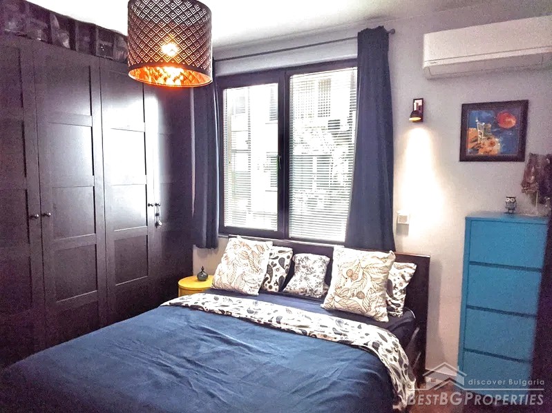 The apartment is in a small building on 2 floors with 6 other apartments. It is 2 minutes from Geo Milev Park, near a 24-hour shop, 100 meters from a bus stop and 10 minutes walk from the Mall Serdika. It is in excellent condition. The furniture is used very little and the apartment has been lived for less than 2 years.