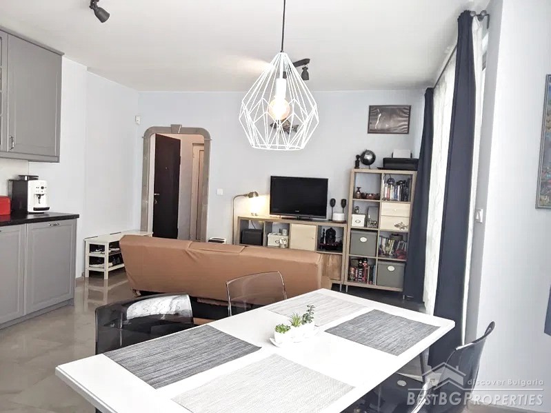 For sale is a fully furnished, designer-made, south-facing, one-bedroom apartment located in the district Reduta (20 minutes walk from the center of Sofia).