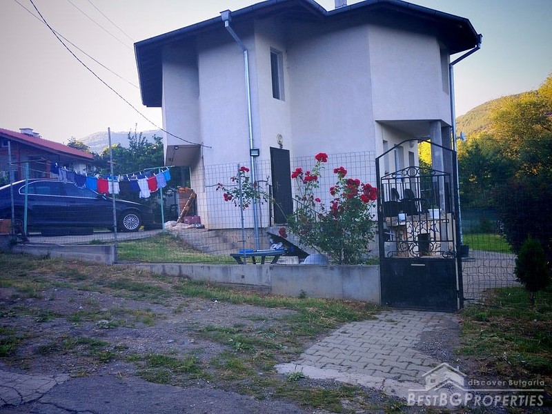 A two-story house for sale with an extremely strong construction: monolithic skeletal beams made of reinforced concrete, reinforced with brick walls and reinforced concrete columns, girders and slabs. The walls are brick with a thickness of 25 cm. Тhe foundations are striped for maximum stability. The roof has a four-pitched wooden structure.