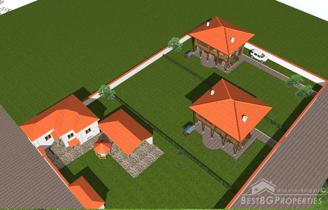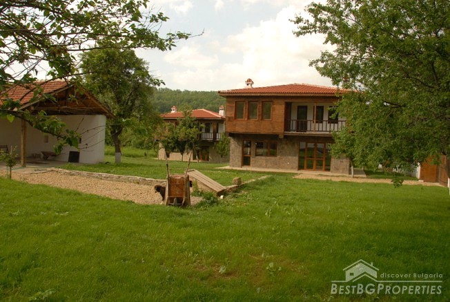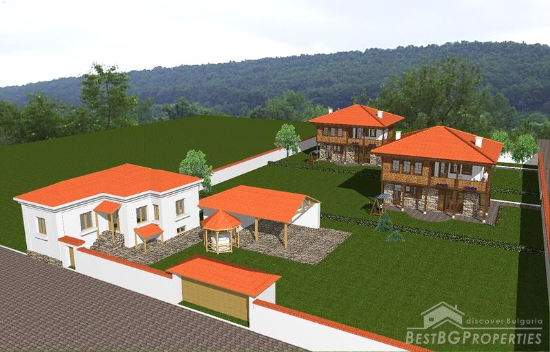 We propose to your attention a beautiful complex of three houses surrounded by a vast garden of 2.000 m2. Two of the houses are new build and one is reconstructed and renovated. The houses are constructed in typical Bulgarian architecture from the Bulgarian Revival period. All houses have a view of the emblematic rounded hills of the Balkan Mountain, overgrown with old oak forests and spectacular view of majestic rocks.