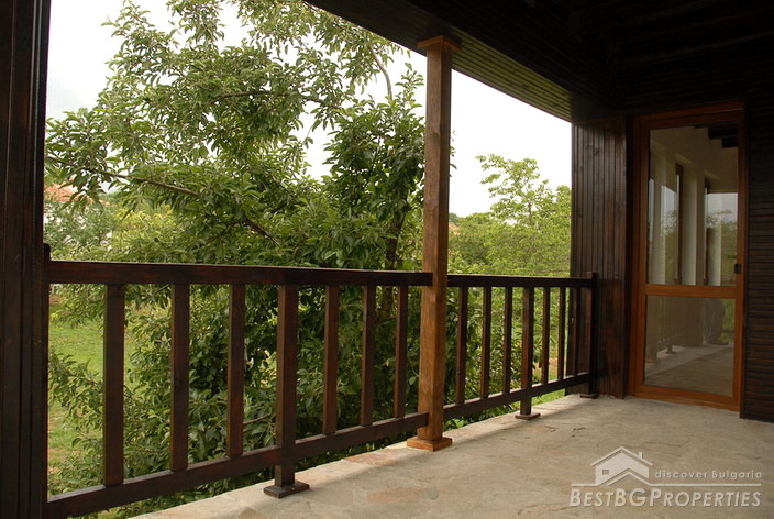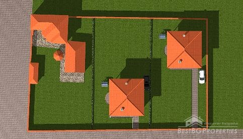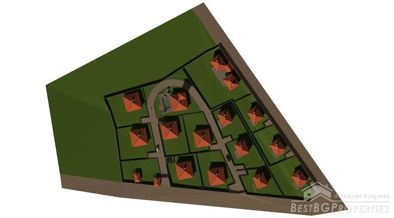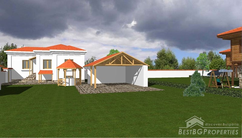 The garden spread on 2.000 sq m. It is arranged with ray-grass, shrubs, fruit trees and other greenery. Also there are some typical Bulgarian elements in one of the nooks of the garden, where you can feel the spirit of the ancient times. The garden is crossed by paths with small wooden fences separating it in parts. The whole garden is surrounded by a stone fence with wooden railings on top. Every house obtains a separate part of this garden or approximately 600 sq. m.