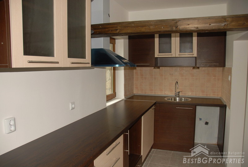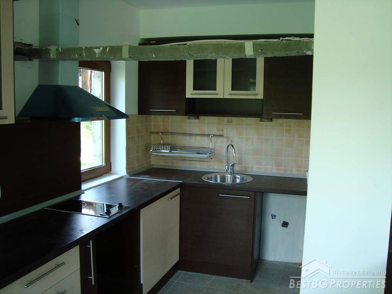 Second floor : three bedrooms, 2 bathrooms with WC (fully equipped) and large terrace with panoramic view; Finishing details : terracotta floorings in all living-rooms, kitchens, vestibules, bathrooms; all bedrooms are with laminated wood floorings; inside doors of MDF; the outside doors and the joinery are of wood; The houses outside are covered with stones up to first floor and with wood on second floor.
