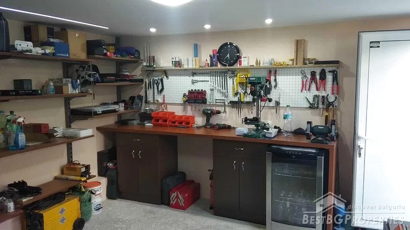 Ground floor (60 sq m) - large bedroom, dressing room, bathroom and toilet and a garage (50 sq m). The garage includes a workshop and space for one car.