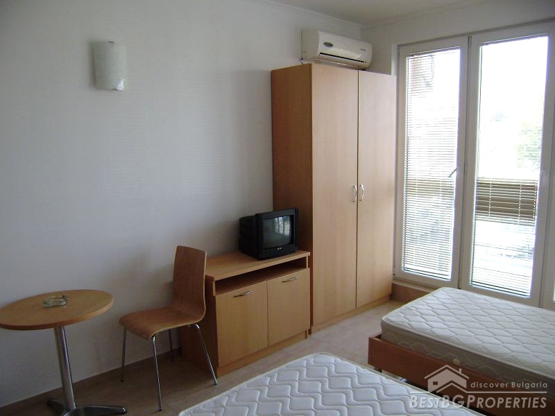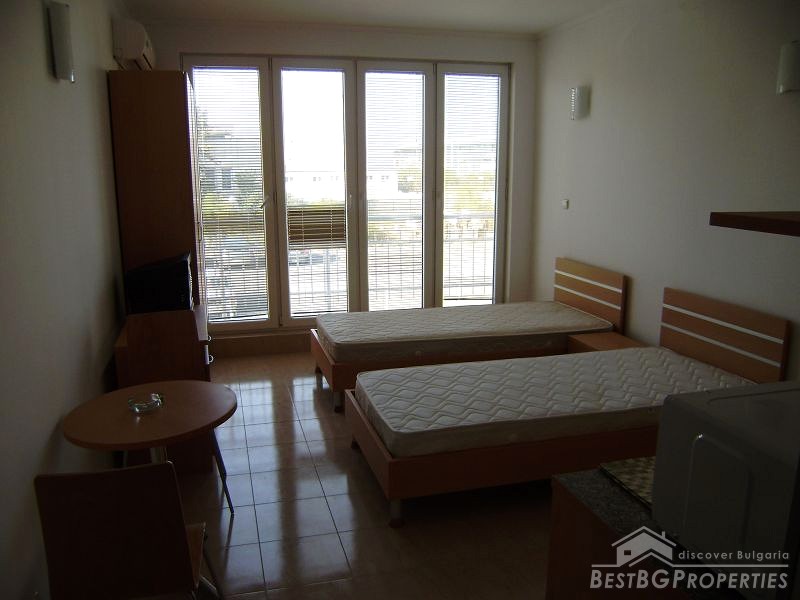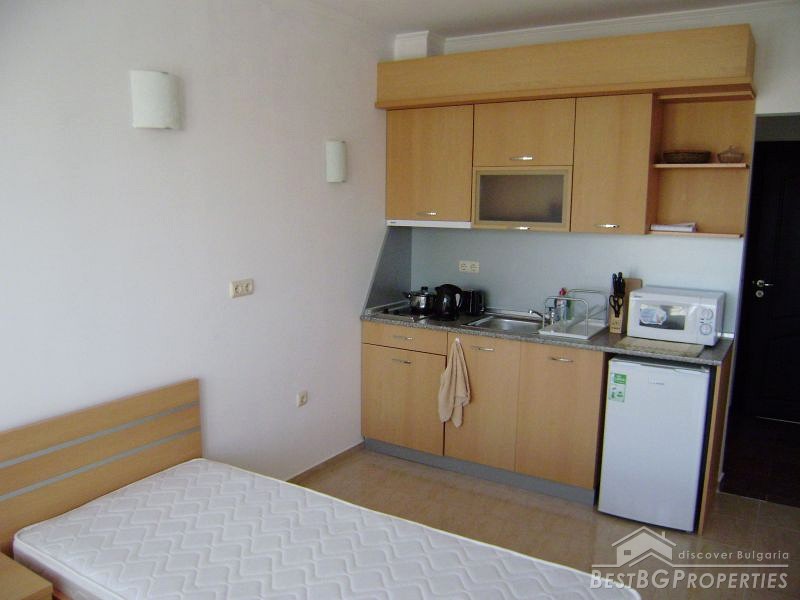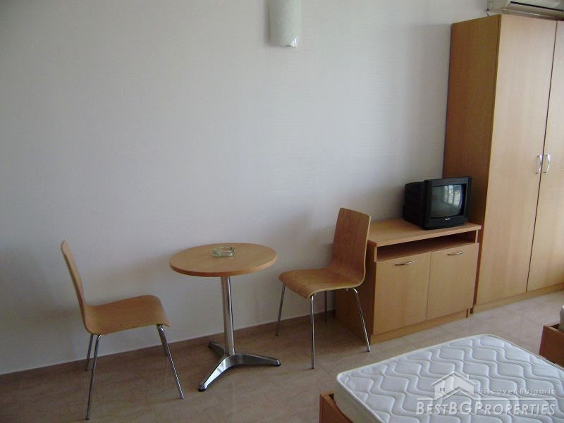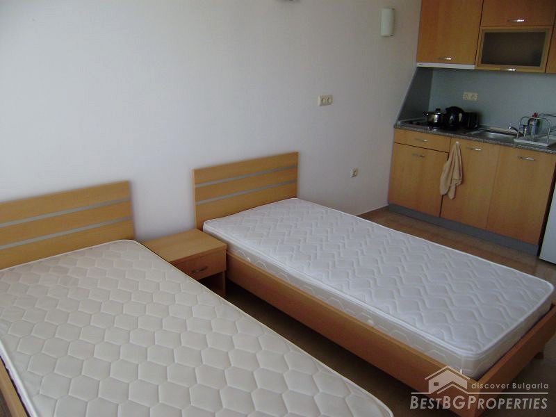 The apartments are identical in size and type - they are both studio type with total living area of 30.21 sq m and come for the price of 35 000 euro each. One of the studios is located on the second floor and the other is on the third. The apartments are for sale completely finished "on key" stage and include full furniture, kitchen and bathroom equipment. They are ready to move in right away. Both comprise amazing view towards the sea and the resort.