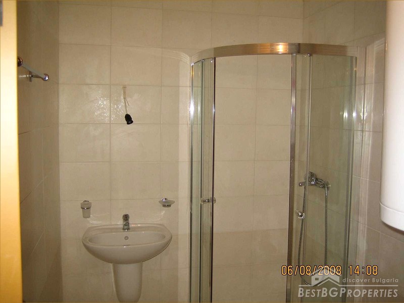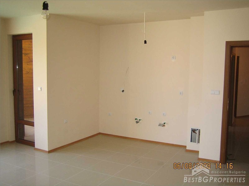 The apartments are fully finished with best quality materials according to the highest standards of construction. The walls and ceilings are painted with latex, the floorings everywhere is from terracotta. The doors are from MDF, the window joinery is PVC. All sockets, plugs, switches and lighting objects are installed. The apartments have air-conditioning and cable TV.