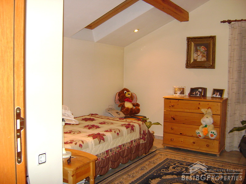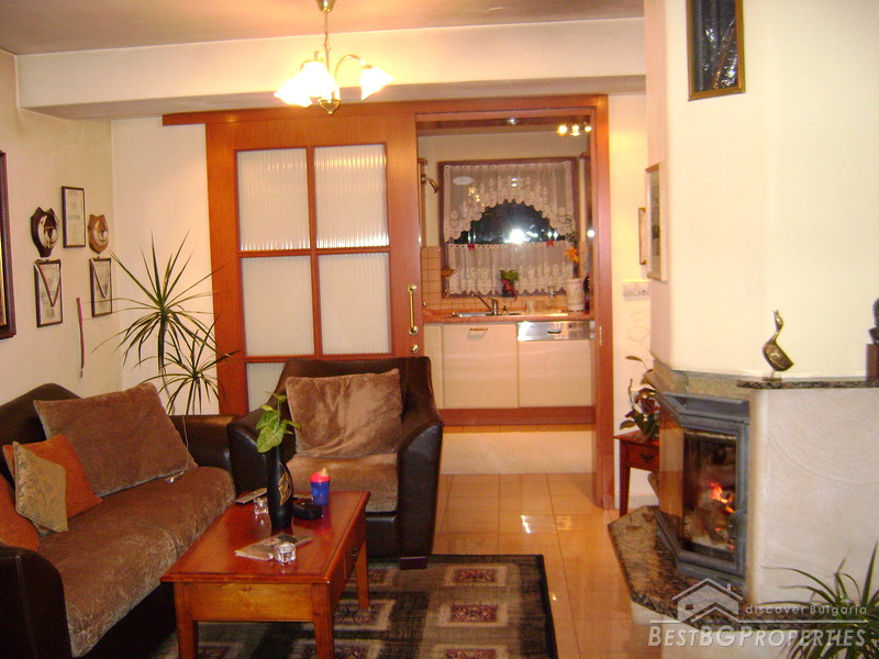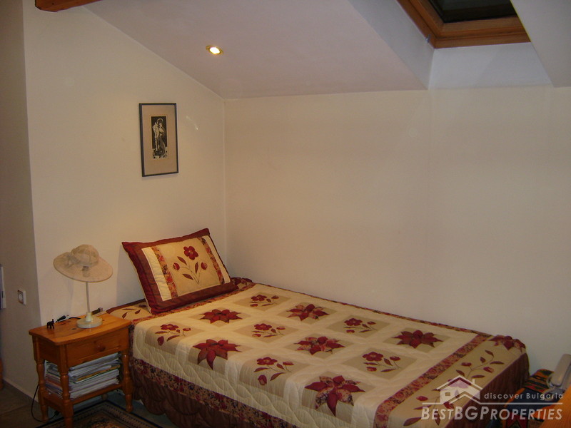 The first house is two stories and has heat isolation, and luxury finishing. The first floor consists of a living room with fireplace and kitchen, also WC. The second floor comprises two bedrooms, closet, WC with a shower cabin, and a balcony.