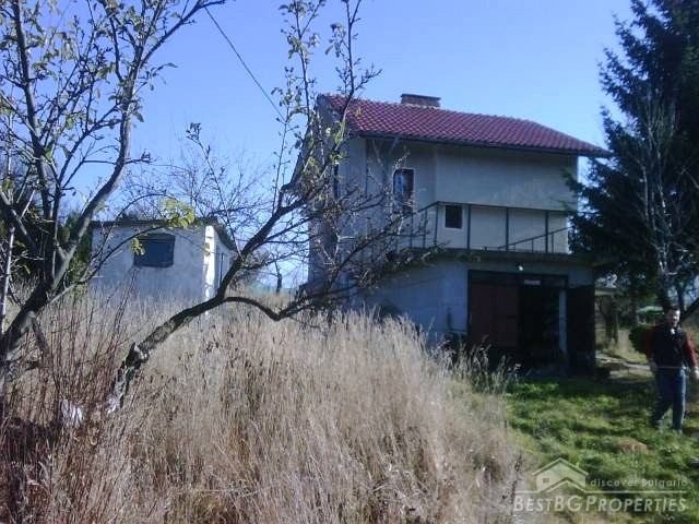 This is our next suggestion for a Bulgarian property for sale. It is located in a very small village just 27 km away from Sofia City. The property consists of two houses built on a very spacious plot - 1380 sq m. The whole living area of the both houses together is 250 sq m. The property is located in close proximity to a pine forest, and there are some pine trees inside the yard itself. There are also some sorts of fruit trees in the yard including apples, wines, and other.