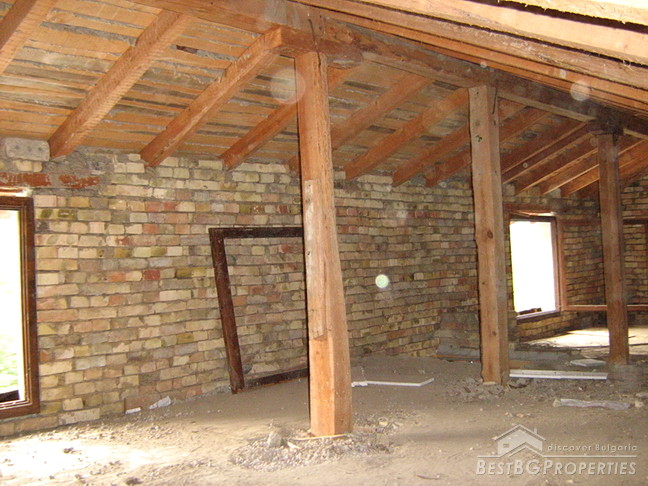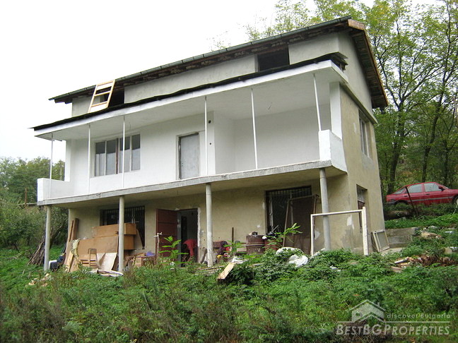 The house is massive three-storey high with total living area 120 sq m. On each floor there are two rooms, huge balconies and a bathroom on the ground level. There is a big 1 000 sq m yard and a small river is passing right next to it. On each floor there are two rooms and a corridor furthermore on the ground level is situated a bathroom. The stairs are outside the house. The fundaments are 40 cm by 50 cm plus two concrete slates on the first and the second floor. The roof was made by the best quality materials for its time.