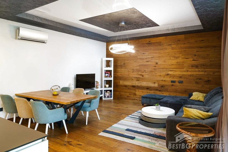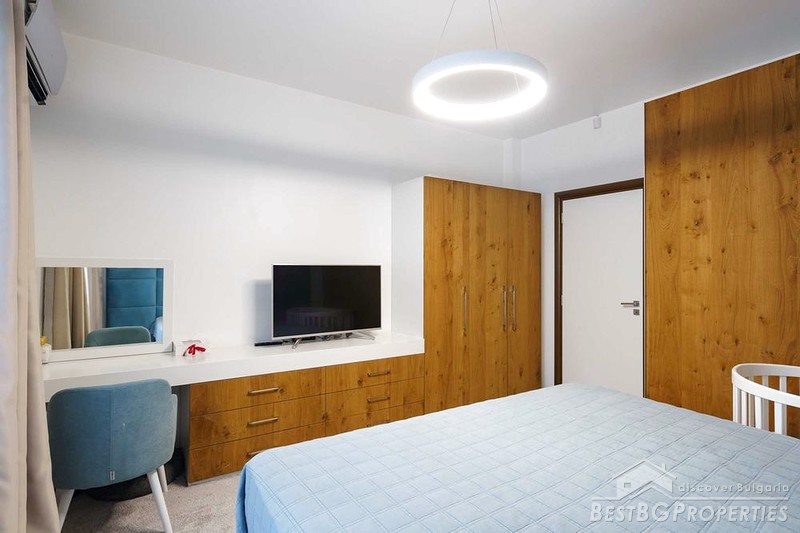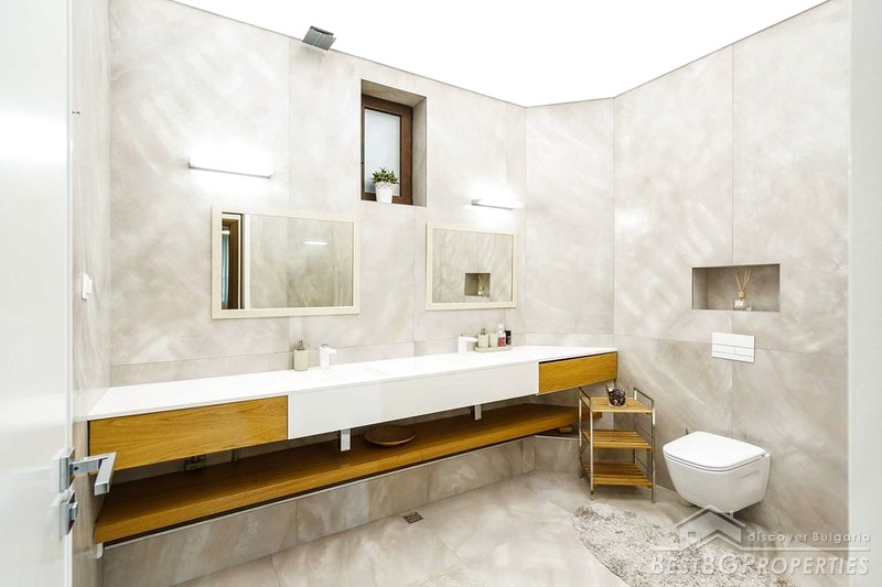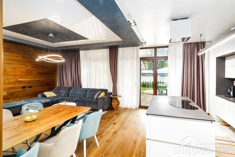 The house was built and finished with only expensive and quality materials. It is sold with all the furniture and electrical appliances. Most of the furniture is made to order! The heating is via air conditioners, which are also used for cooling in the summer. Everything inside is selected aesthetically and with great taste.