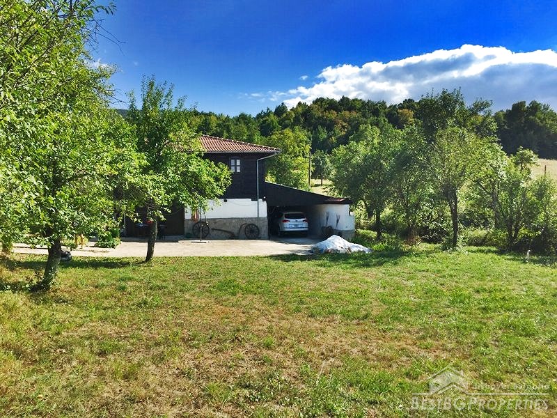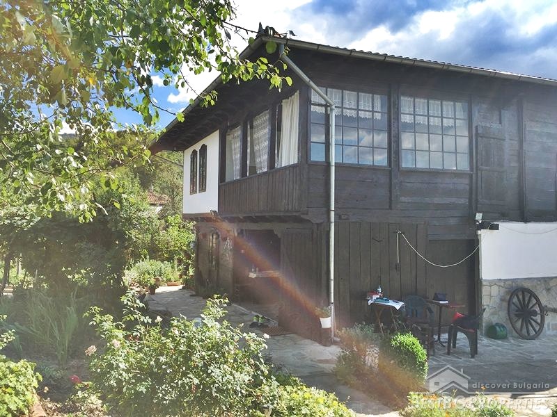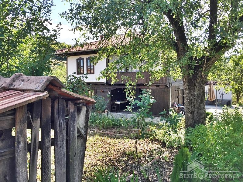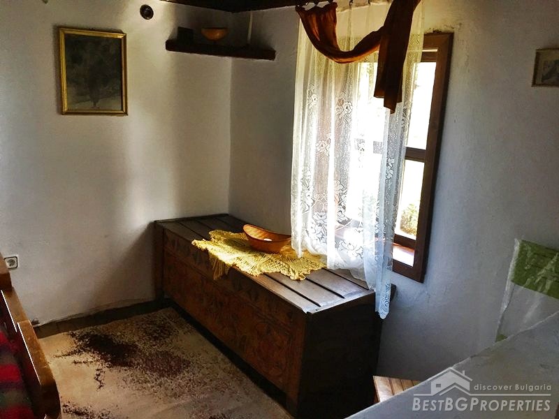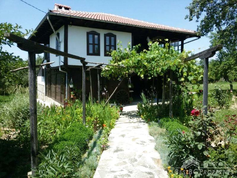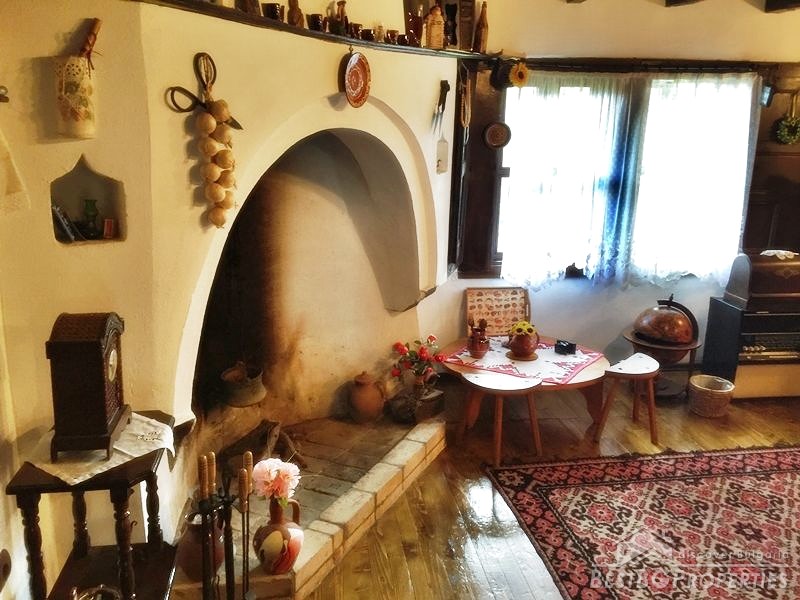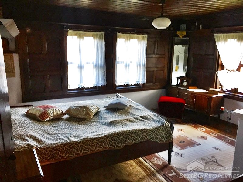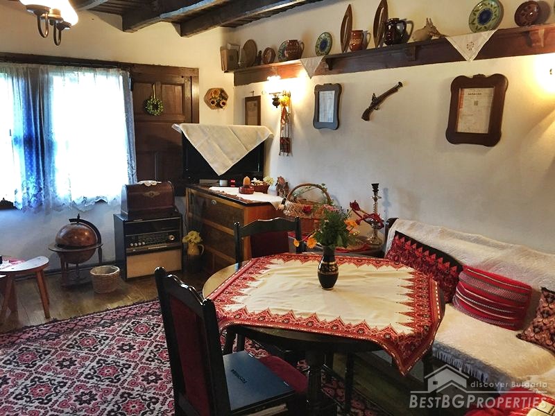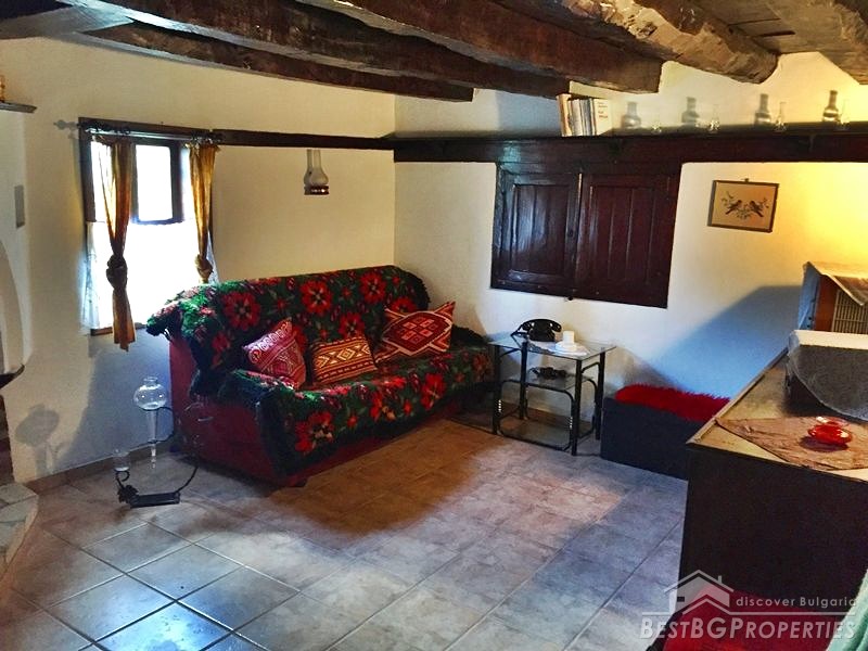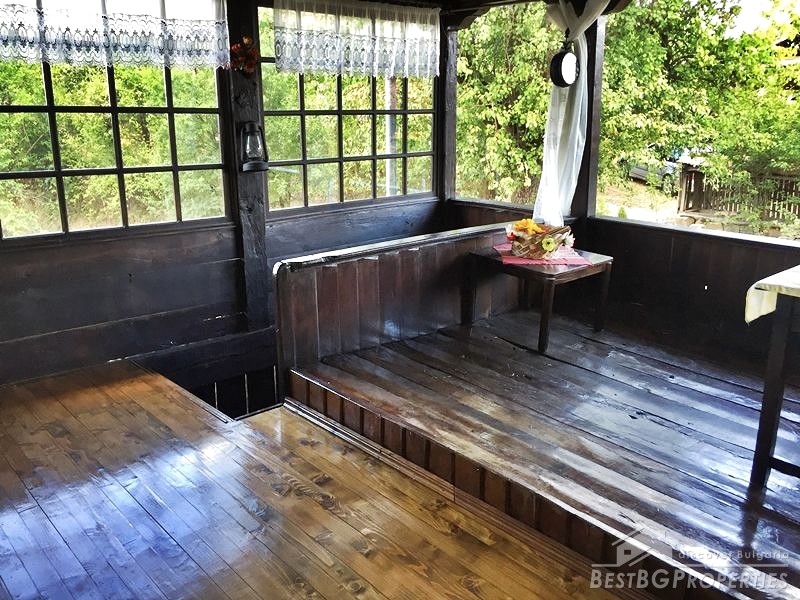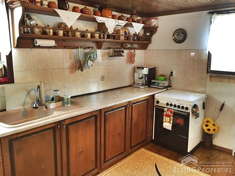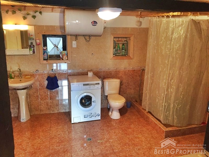 The house was built in an authentic Renaissance style typical of the region of Elena. It has a living area of 140 sq m, distributed between two floors. In front of the house, there is a shed. From there you can enter the living room, which has completely southern exposure. This room has a traditional corner fireplace. From there you can access a bedroom that is furnished with a double bed, wardrobe and a dresser. There is also a large bathroom (15 sq m) with a separate entrance. Outside wooden staircase leads to a spacious veranda on the second floor. The second floor comprises with three rooms - a kitchen with modern equipment and all electrical appliances, a living room with a fireplace and a spacious bedroom furnished with solid wood furniture. Behind the house, there is a garage with an area of 30 sq m.