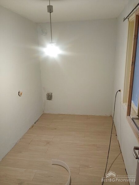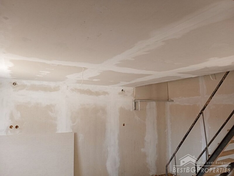 The house boasts two floors and a total living area of 90 sq m. It consists of three bedrooms and a large living room with a kitchen. The house was partially renovated and some finishing is required. The price includes a fireplace with radiators for each room that still need to be installed, a new boiler for the bathroom and toilet, laminate for the rooms. Currently all the rooms are finished on plaster and putty.