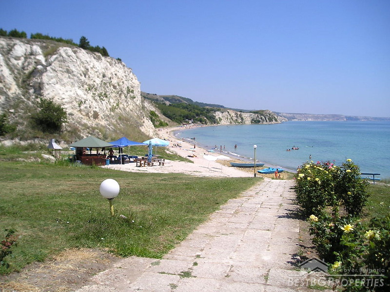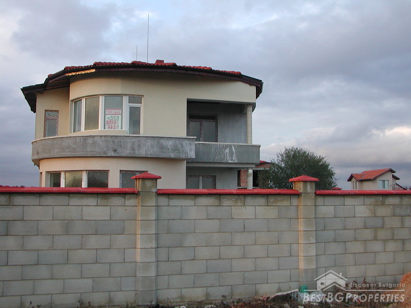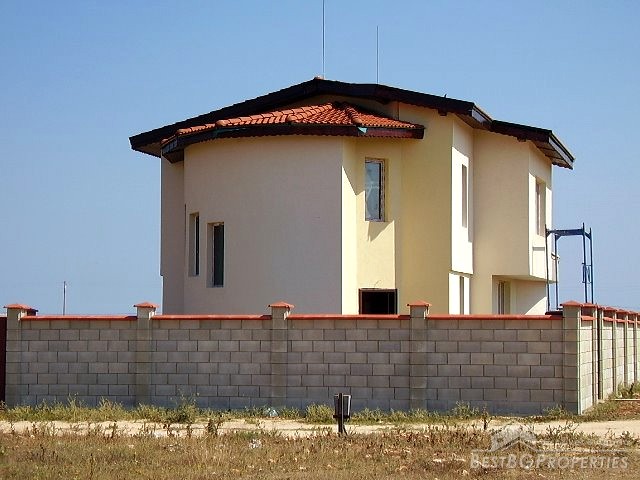 This newly built house has total living area of 214 sq m and is located in a quiet village on the very sea front. It has unique architecture typical for the sea villas in the region.The first floor comprises an entrance hall, big bathroom and WC, kitchen with dining room and living room.The second floor is slightly bigger and consists of three bedrooms and two bathrooms/WC.All bedrooms have panoramic view of Kaliakra Cape and the sea.Each room has access to a terrace.The house will be completed with laminate and tiles,fitted bathrooms,electrical outlets,MDF door, PVC windows.Each room will have outlet for cable tv and internet.The whole house will have a secure system installed.The heating will be done through floor heating. The price includes landscaped garden and solid fence.The garden is 500 sq m.Expected completion date : March 2008The property is 800 m from Thracian Clifes Golf & Spa Resort , 1.2 km from Black Sea Rama Golf Complex and 1.8 km from Lighthouse Golf Resort.The village itself is very peaceful and is ideal for people who wish to escape from the noise and the crowds. The town of Balchik is 7 km away, Kavarna is 5 km away , Spa center Tuzla is 5 km away and the International Airport in Varna is 55 away.