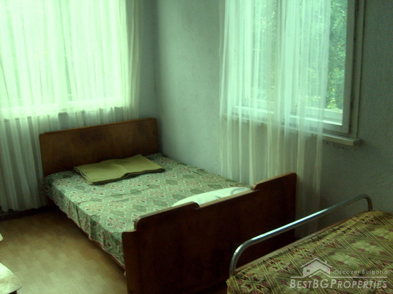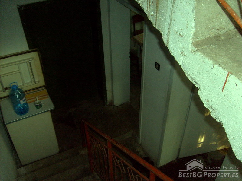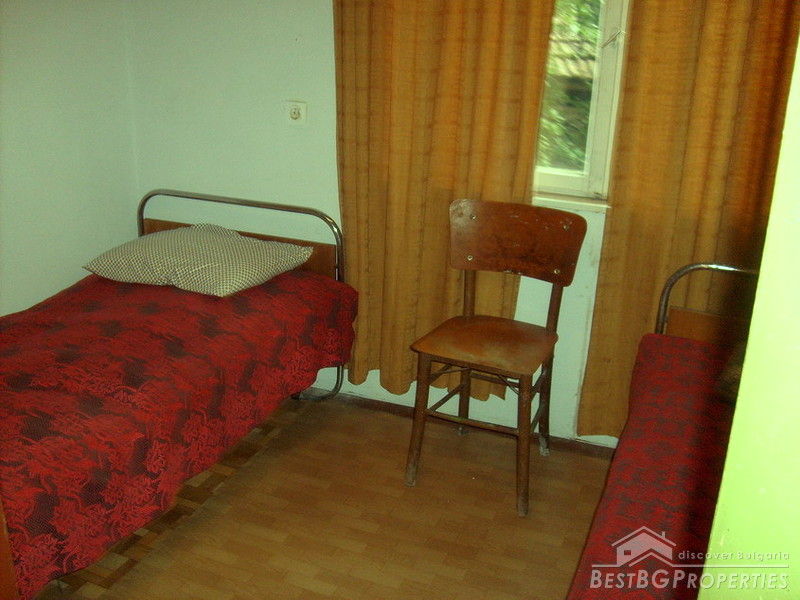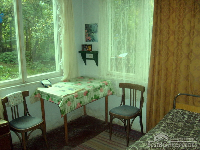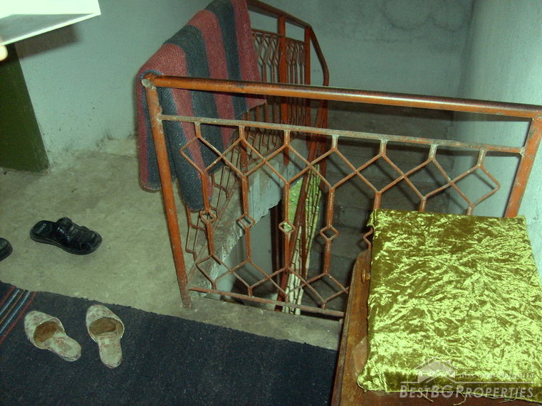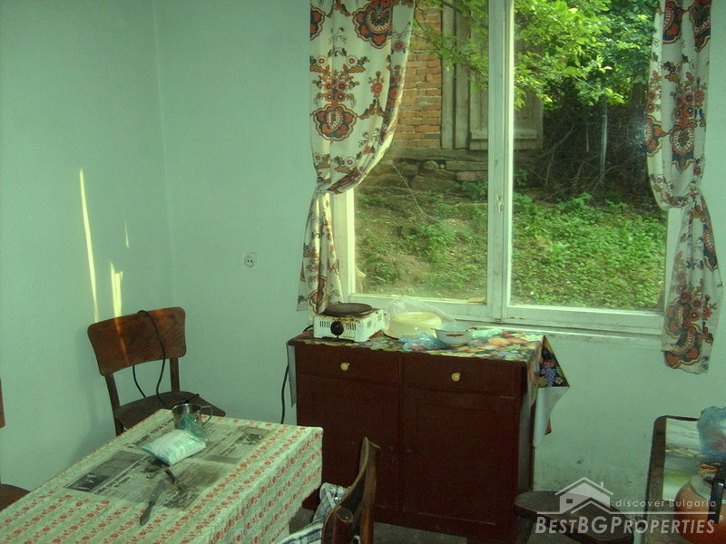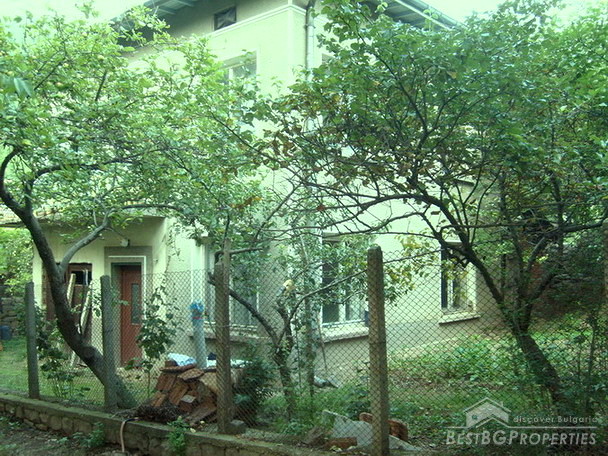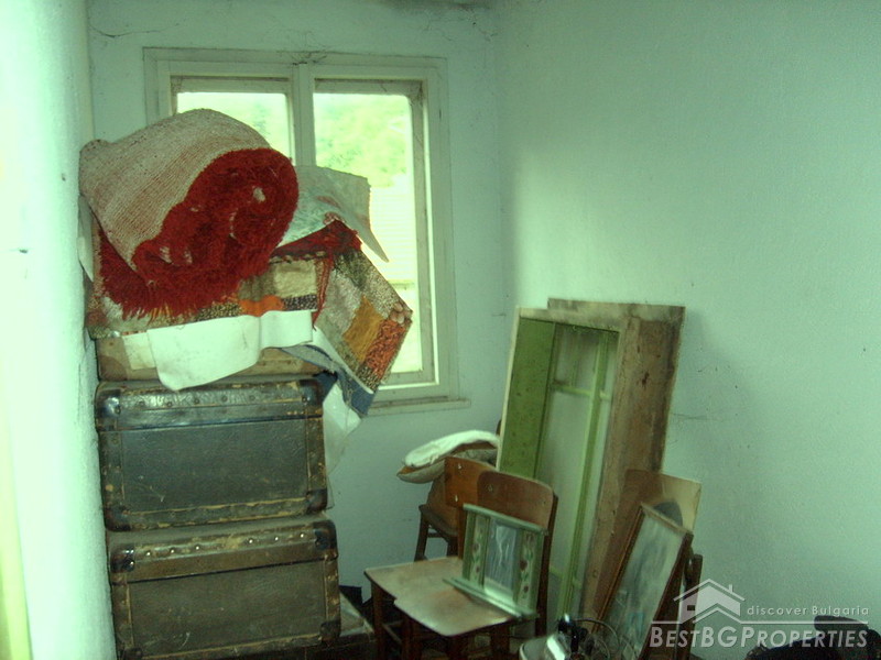 The house is two-storey high with total living area of 120 sq m. On the first floor there are: three rooms, closet and a garage. On the second: four rooms. It is massive building with concrete slates. There are functional outside bathroom and a summer kitchen. In the big 350 sq m yard there are fruit trees and a small river is passing very close. The house itself is liveable at the moment but if you want to implement you style you should do a little renovation work. It is possible to make a swimming pool or small lake in the garden using the water from the river.