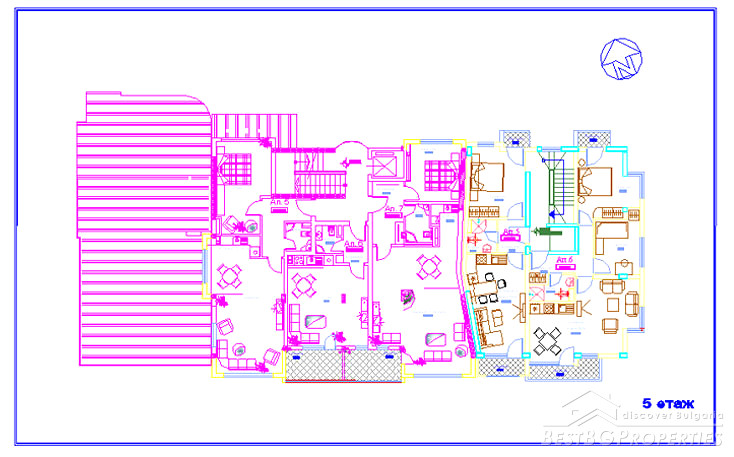 The property is 65 sq m - a one-bedroom apartment with separate bedroom, living room with a kitchenette and bathroom/WC. The apartment is located on the fifth floor and has north-south exposure.
