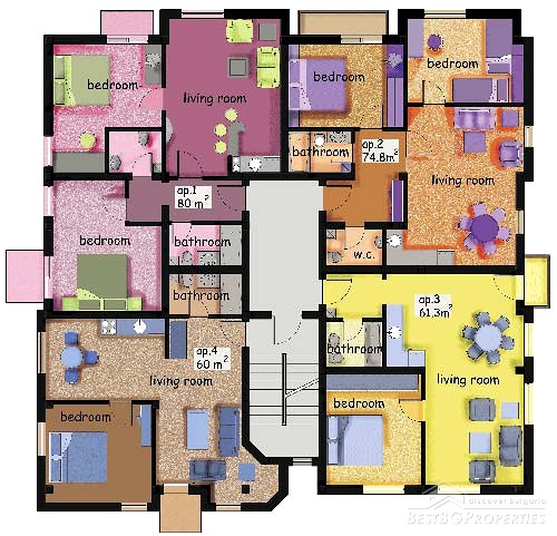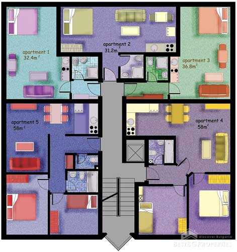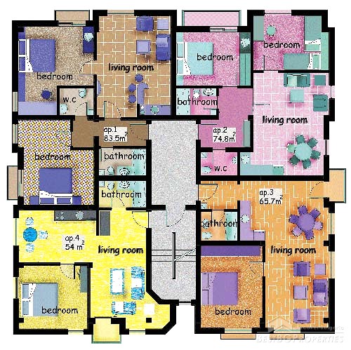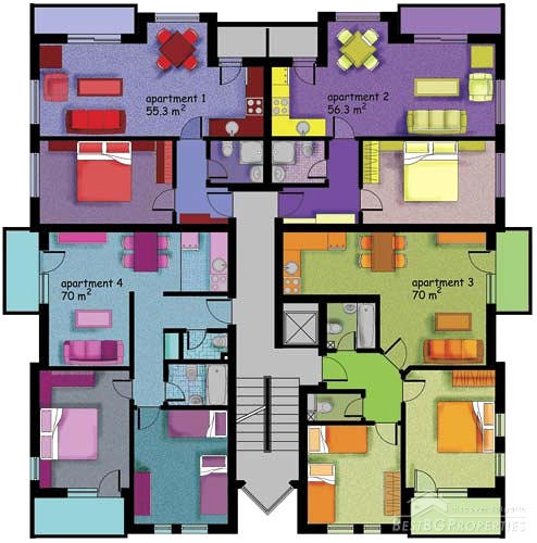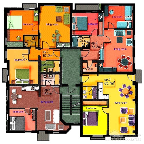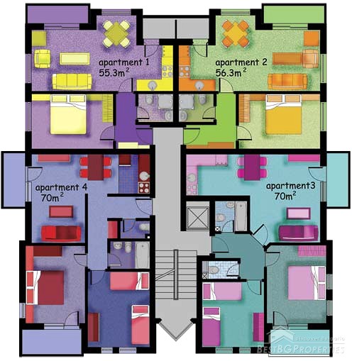 The wide and spacious apartments vary from 28.3 to 83.5 sq.m., and from Studios to 2-bedroom apartments.