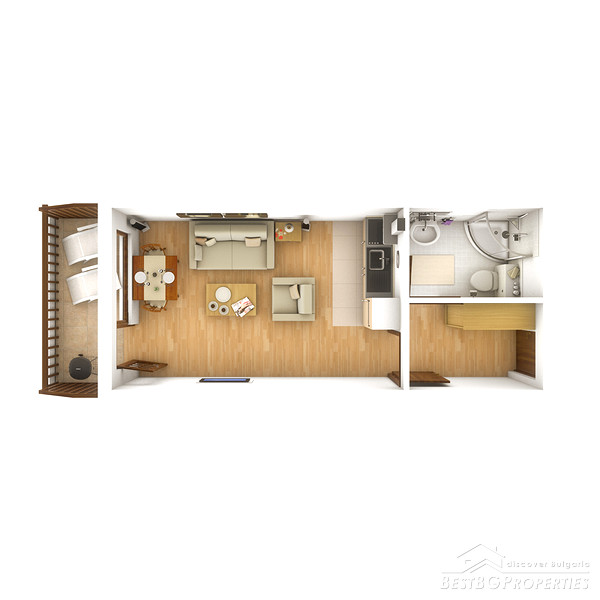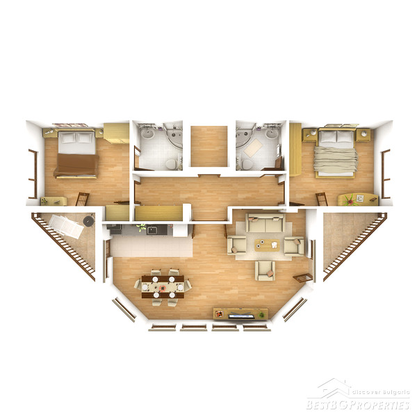 It is ideally situated close to the prestigious 18 hole golf course designed by Ian Woosnam, Ryder Cup Captain 2006 and the booming ski resort of Bansko.