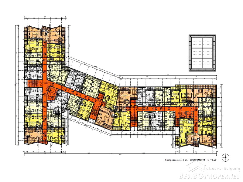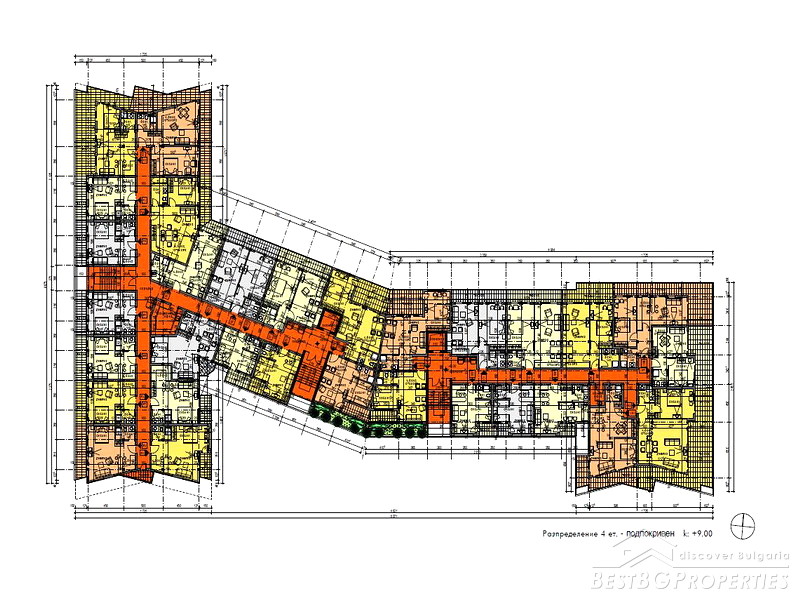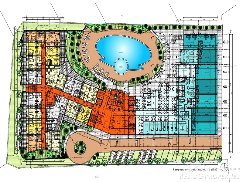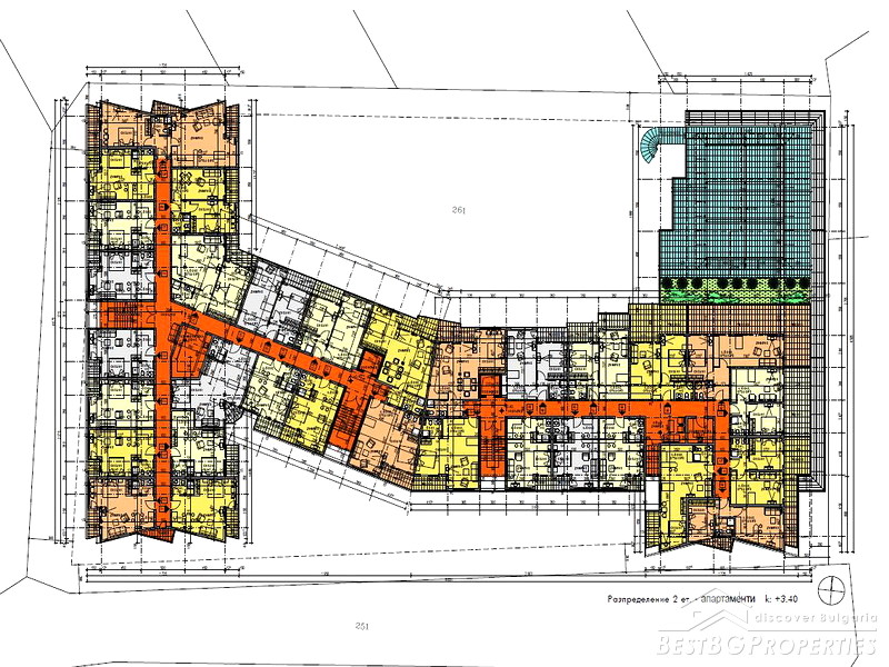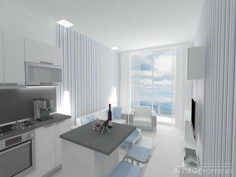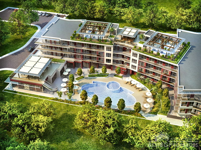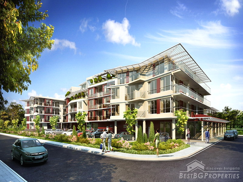 The complex itself contains 111 apartments with sizes ranging from 38.56 to 98.63 sq m. All apartment units will be completed to a stage ready to be furnished-painted walls, floorings, lights, switches, sockets, cable TV, Internet, telephone, air-conditioners and fully fitted bathroom with WC (including terracotta, faience, wash basin, lavatory pan with a flush and shower cubicle). There is also an option to buy a fully furnished apartment. The complex will provide furniture, equipment and services with match a 4+ star standard.