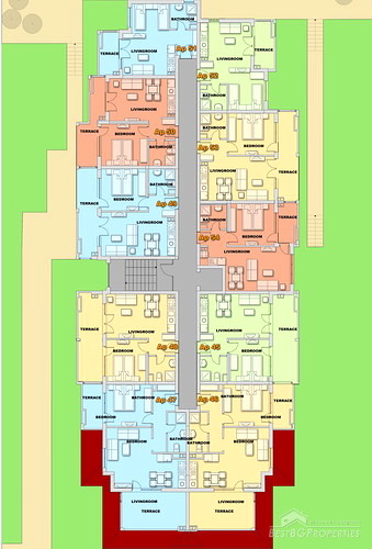 - 35 % /second instalment/ paid at signing the Preliminary Contract within 20-28 days after the deposit has been paid (all legal rights of the buyer established)20 % /third instalment/ when the complex reaches 3rd floor*