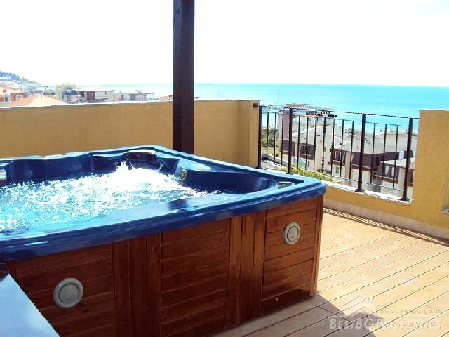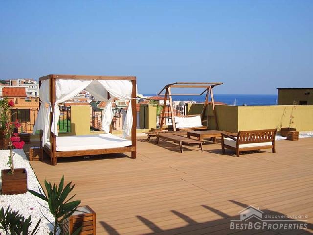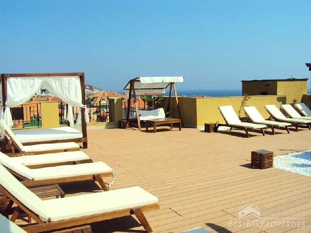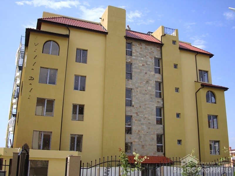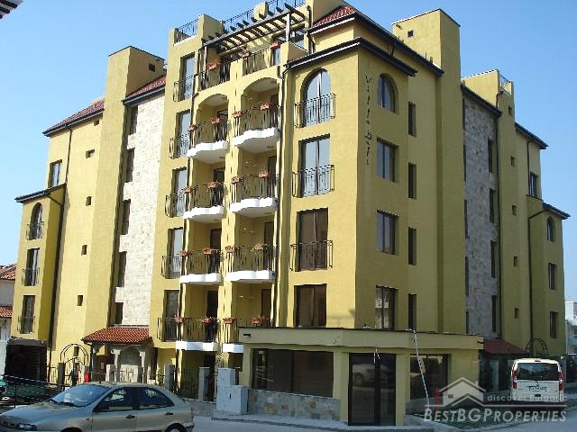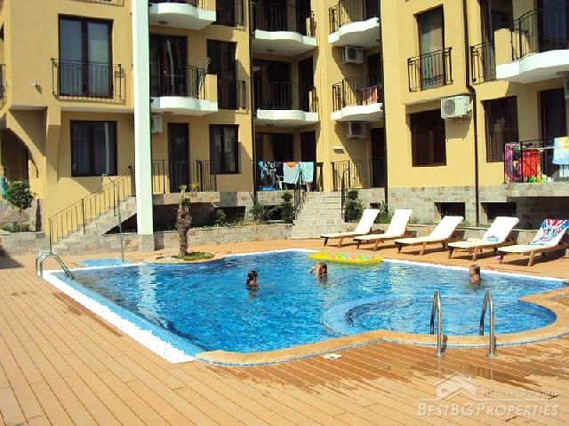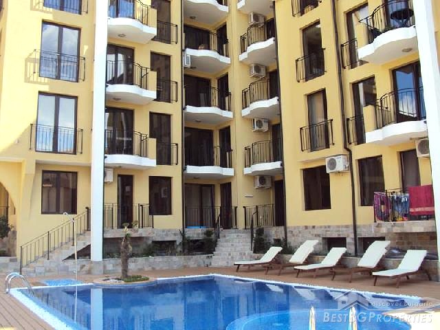 The tranquil site is very close to the posh Sunny Beach resort (5 km) and the romantic old town of Nessebar (9 km). The exclusive complex offers luxury studios and 1-bedroom apartments, many with sea views, distributed in two residential buildings.