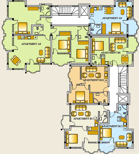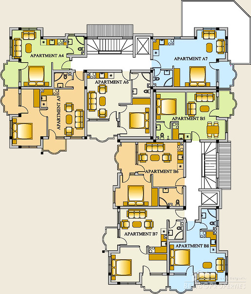 Adjacent apartments purchased as multiple units can be joined during construction to form larger properties.