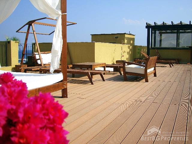 Holiday homes in a trend-setting position, fine architectural design in classic Mediterranean style, extremely elegant interiors and an excellent standard of finish, with high quality care and precise attention to every small detail. The complex comprises reception area which simplifies the rental process. Available are swimming pool for adults and children, fitness center with sauna, cozy children playground area, landscaped gardens and luxurious sun roof terrace equipped with sun beds and Jacuzzi.