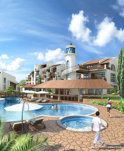 All buildings are designed in Mediterranean Style, matching the sunny climate of the area.