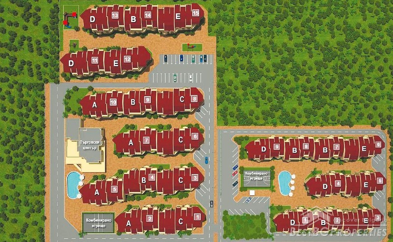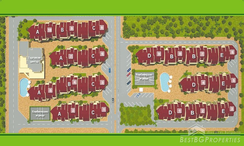 The Central Park II Resort is the second phase of the large residential complex Central Park in the outskirts of Sofia city. The complex is situated only 13 km away from downtown Sofia. Meanwhile it is far enough to provide peace and privacy for all apartment owners. The complex is easy accessible, some 500 m far from the highway E80. There are 15 km to the Sofia International Airport and 7 km to the modern golf course in the village of Ravno Pole.