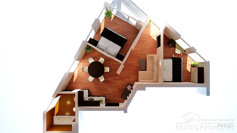 This is an apartment complex situated in the area of Sarafovo on the first line from the sea. The quarter lies on the south Black Sea coast between the ancient town of Sozopol and Nessebar, and it’s very close to the road between Bourgas and Sunny Beach. Sarafovo has an expanding international airport in 10 min distance. The quarter is 10 km away from the center of Bourgas and 30 km north from Sozopol, 10 km south from Pomorie and 30 km from Nessebar and Sunny Beach resorts. 3 km south from the quarter spreads The Nature Reserve "Atanasovsko ezero". This lake can definitely be called "the bird paradise" of Bulgaria, as there are 316 species of birds, migrating, wintering and nestling here. The distance to the sandy beach is 200 m.