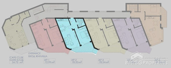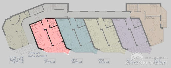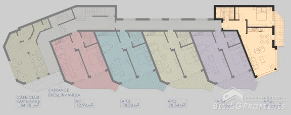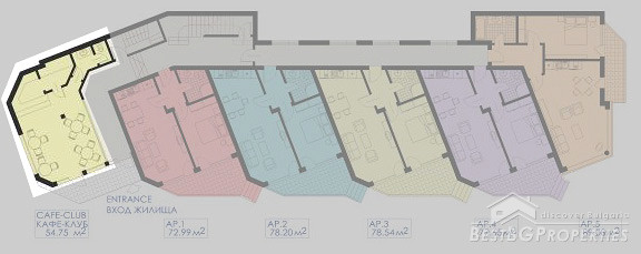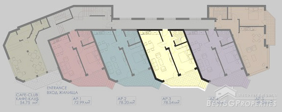 The complex comprises 22 apartments, beautiful garden, swimming pool, cafe-bar and parking lot. Annual rental management will be arranged.