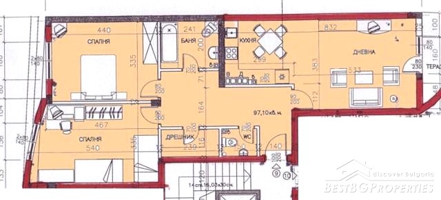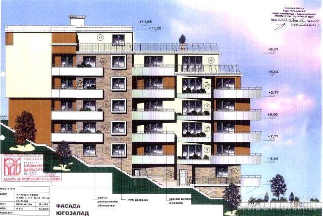 We offer to you several apartments in the villa area of Varna only a few kilometers from the sea and the beaches. This is a new development – residential building close to the lovely sea resort of St. Constantine and Elena. The building adjoins two asphalt roads. It is still under construction but finished to the fifth floor (there will be seven floors). All apartments have large terraces and offer stunning sea view! The building will be finished with: § reinforced concrete construction § brick masonry and heat insulation § external rendering – silicate § roof – granitegrease, gutters § staircase and elevator § PVC rendering § Armoured entrance door, without inside doors § Garages with metal doors and installation for automatic opening § Plastered Ceilings ready to be painted § Walls ready to be painted § Power installation § Interphone installation § Telephone installation and cable TV § Water-supply installation § Gas-pipes for gasification § Ventilation § Outside water-conduit with central water-meter § External sewerage § Letter boxes