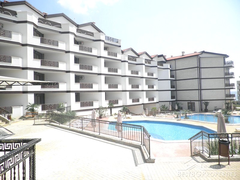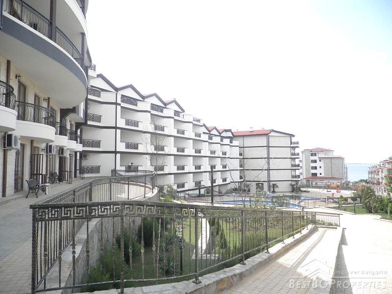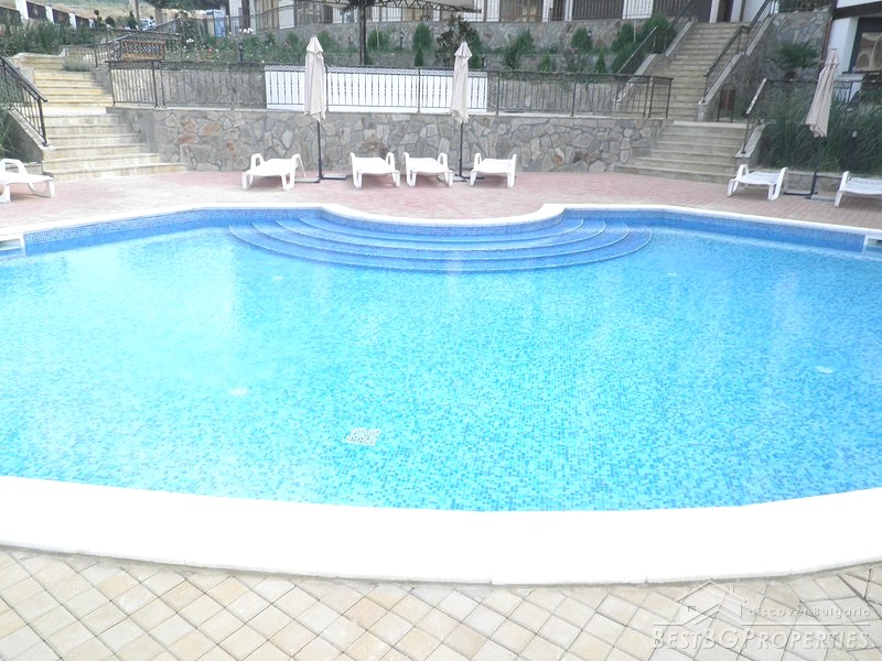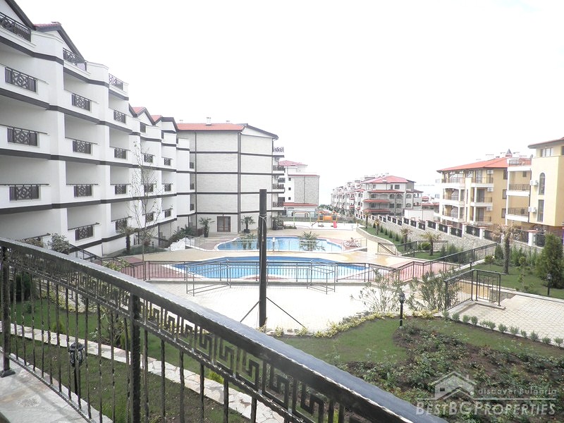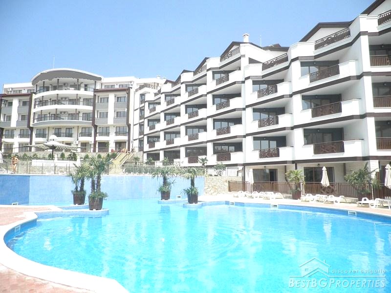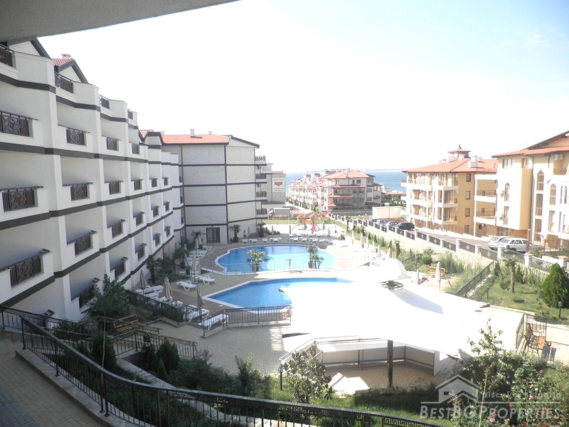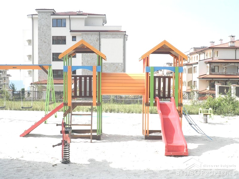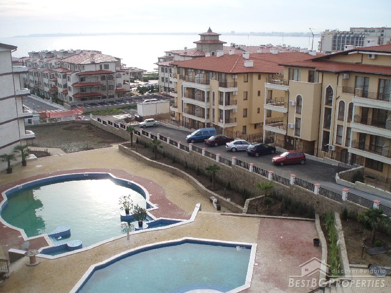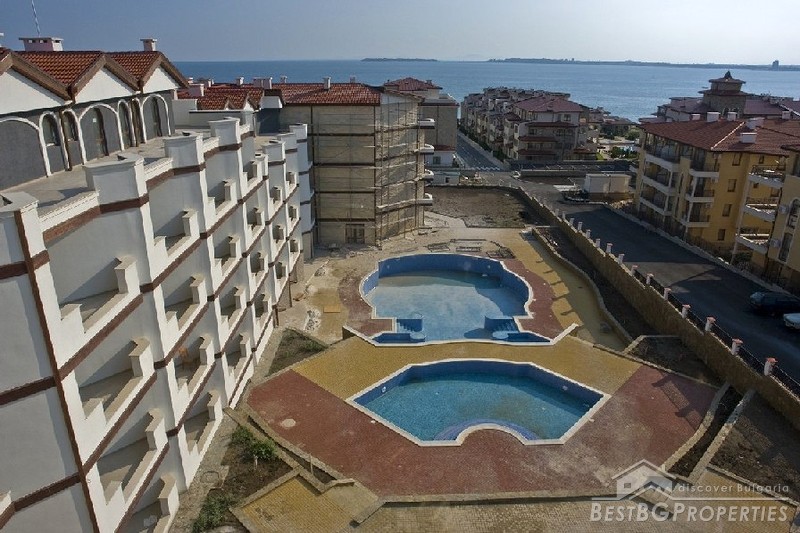 It is a luxury apartment complex located only 50m from the beach in the region between St. Vlas and Sunny Beach-one of the most famous seaside resorts on our Black Sea.The development consists of 200 apartments (135 studios, 60 one-bedroom apartments and 5 two-bedroom apartments). Most of the apartments have wonderful view of the sea, Nessebar peninsula and the mountain range. There are two swimming pools, pool bar, reception, open-air kindergarten and shops on the territory of the complex. You are offered 24 hour security and maintenance of the common parts which provide extra comfort and freedom.